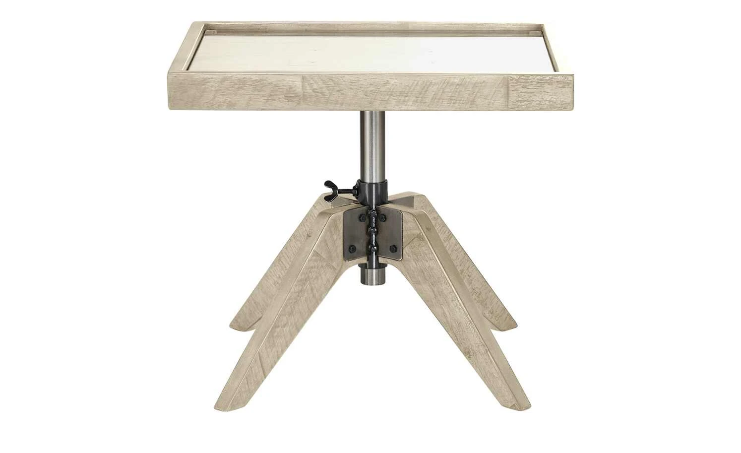 Der Beistelltisch Carpi Akazie punktet mit seiner Funktionalität. Er lässt sich ganz leicht in der Höhe verstellen – und zwar von 34 bis 54 Zentimeter Höhe. So können Sie ihn ganz nach Bedarf anpassen. Die rechteckige Tischplatte ist aus massiver Akazie in Vintageoptik gefertigt. Zusätzlich ist sie mit einer Glasoberfläche ausgestattet. Sie ist robust und lässt sich ganz leicht pflegen. An das 4-Fuß-Gestell aus massiver Akazie schließt sich eine Gestell-Säule an. Sie ist aus stabilem Metall gefertigt.