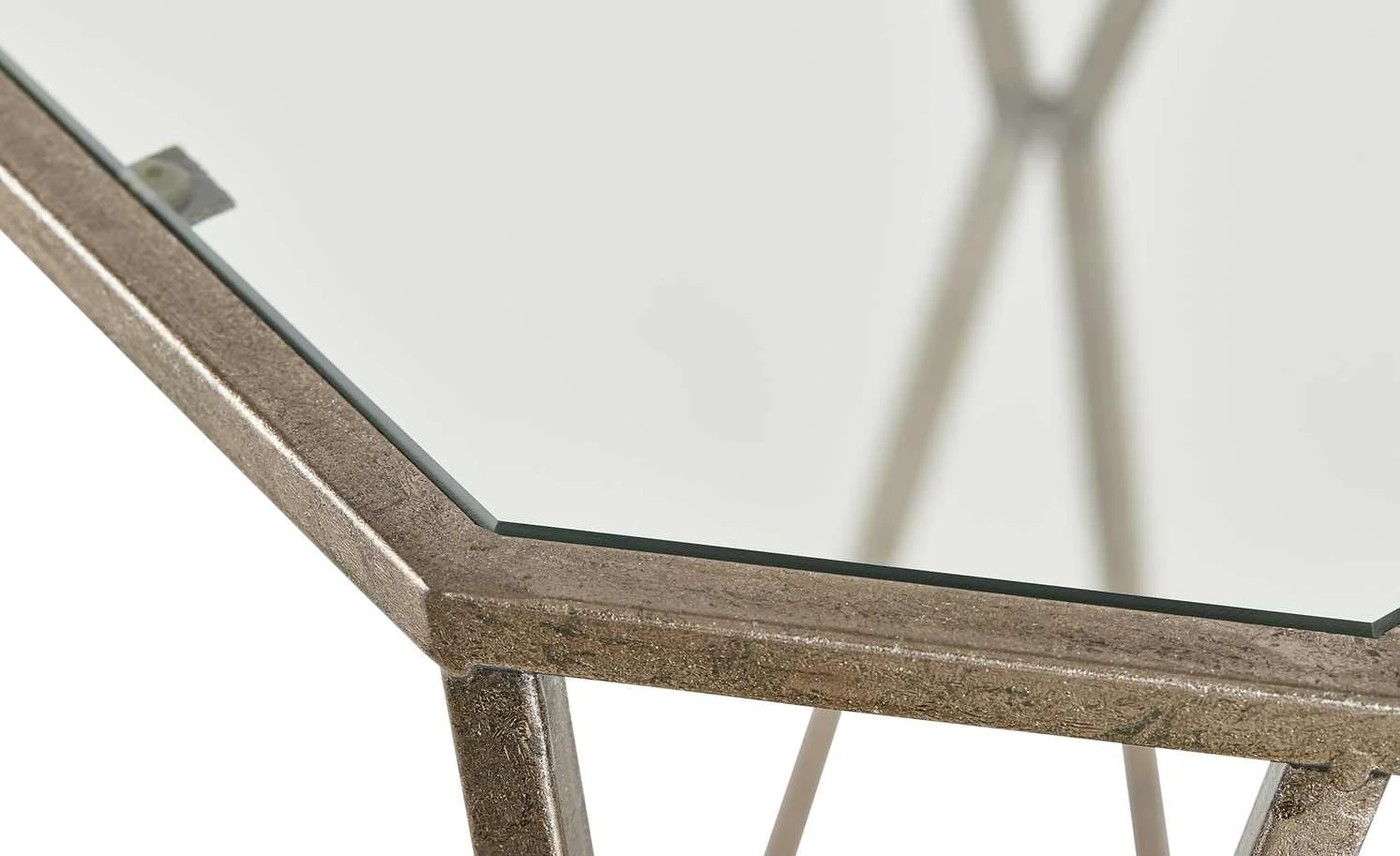 Das geometrische Stahlgestell macht den Beistelltisch Gleam zum absoluten it-Piece in jedem Raum. Die antikbronzefarbenen Verstrebungen sorgen für einen modernen Look und tragen die Tischplatte zuverlässig. Diese besteht aus hochwertigem, pflegeleichtem Sicherheitsglas und bietet Ihnen nützlichen Ablageplatz. Auch Pflanzen können hier gut in Szene gesetzt werden.
