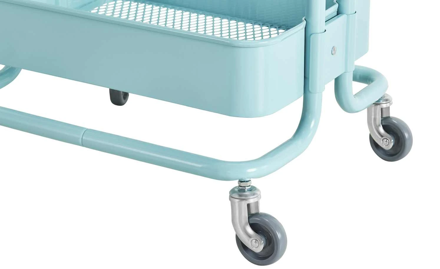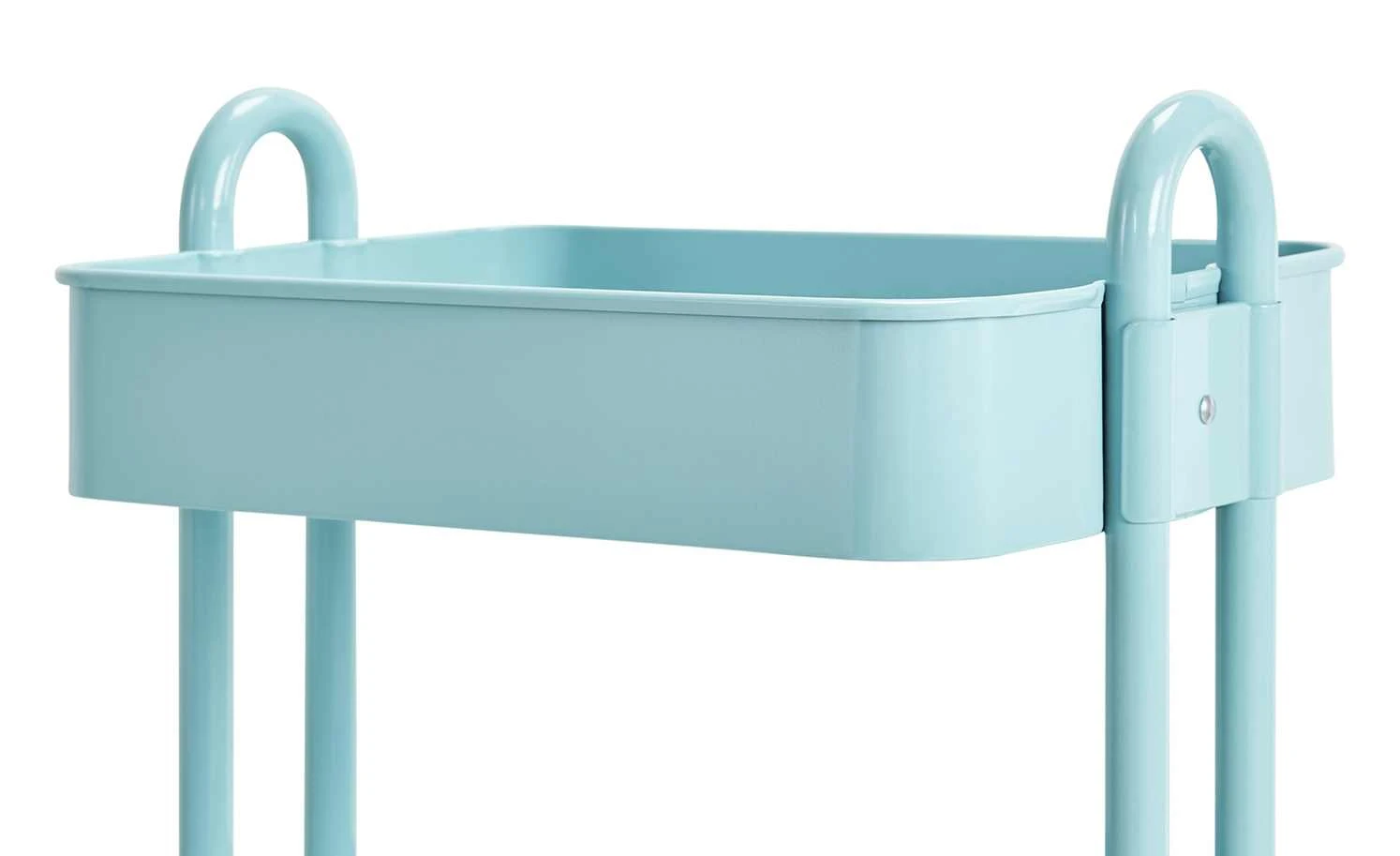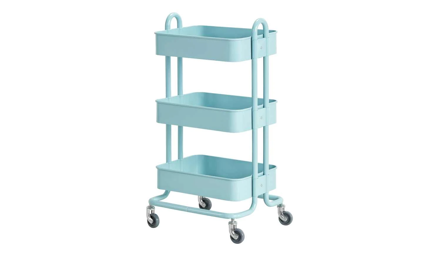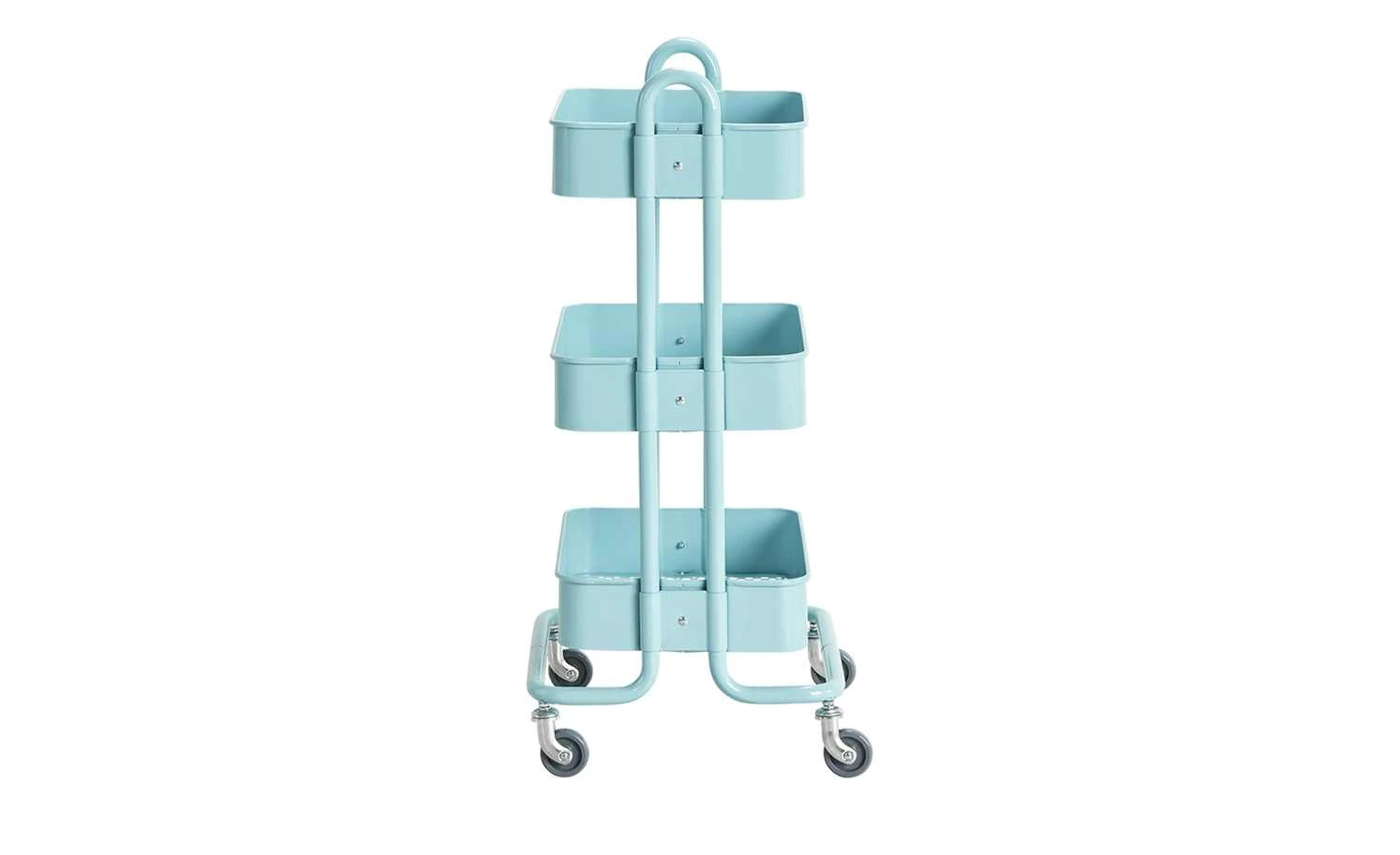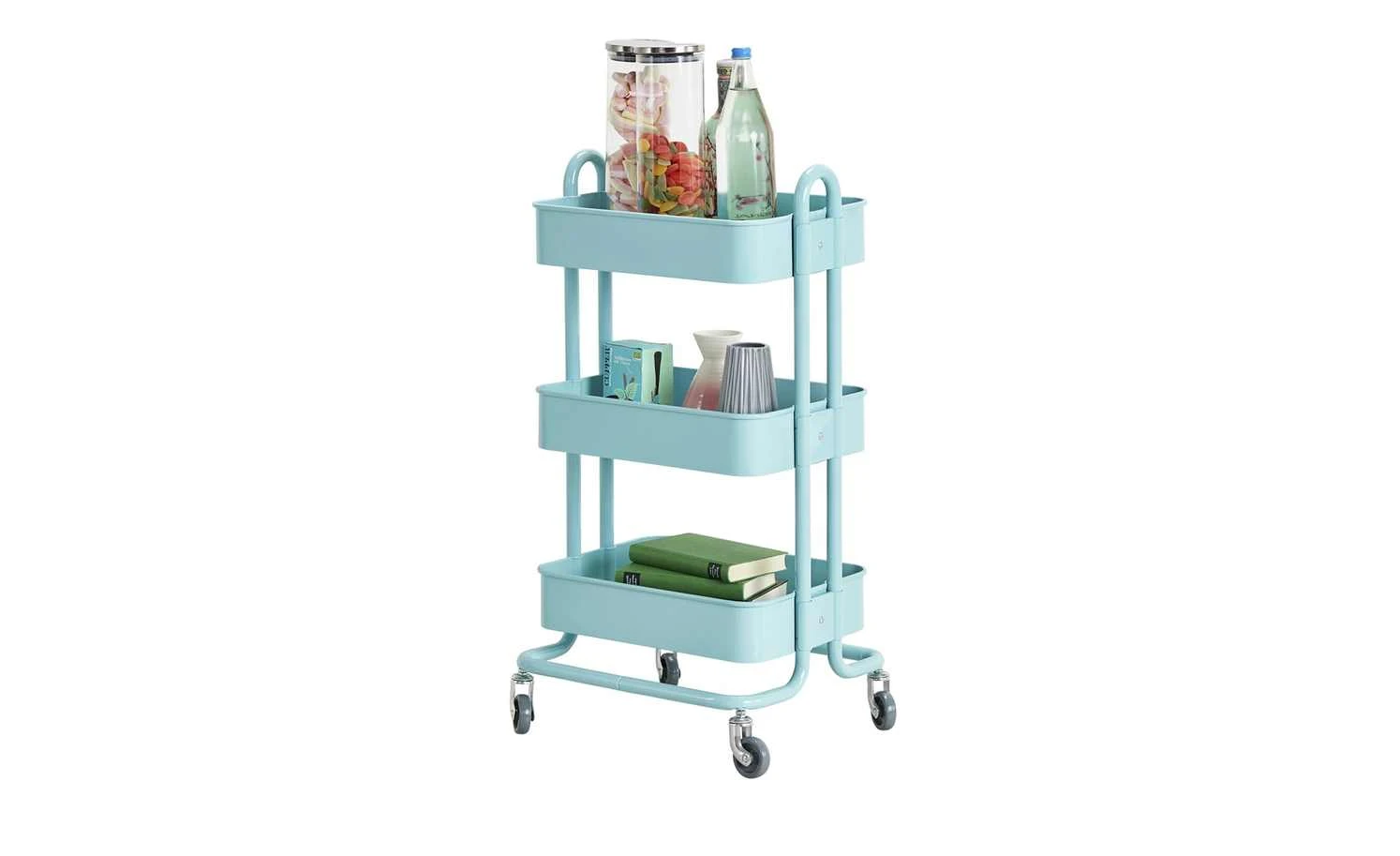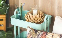Richtig praktisch ist der Beistelltisch Menta. Durch die Rollen können Sie ihn dorthin rollen, wo Sie ihn benötigen. Menta verfügt über drei Ablagen mit einem erhöhten Rand. Ablagen und Gestell sind aus lackiertem Metall.