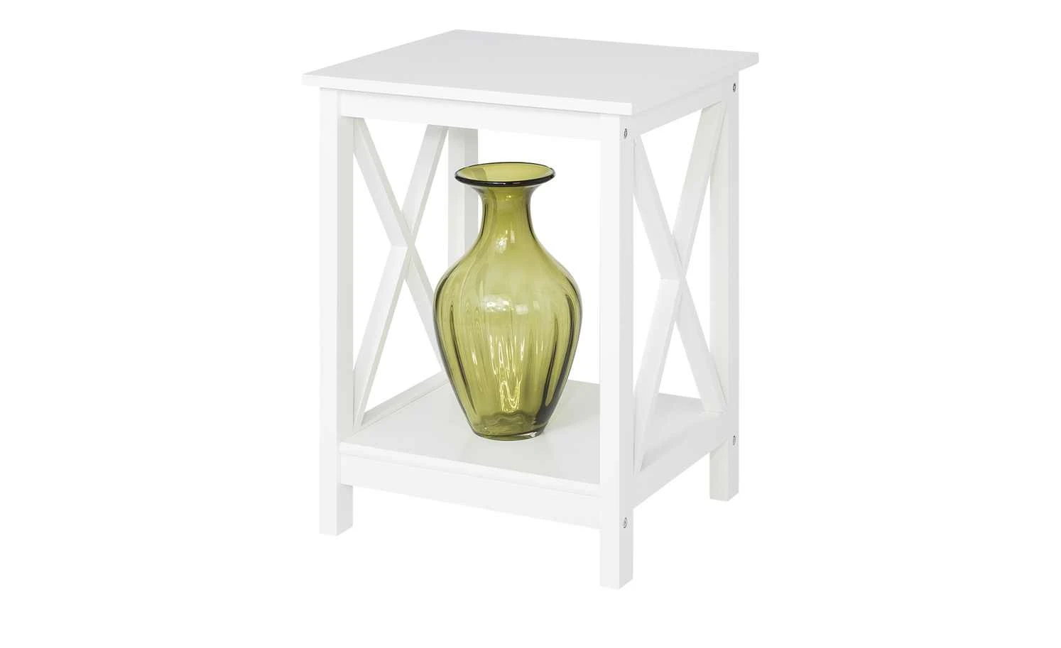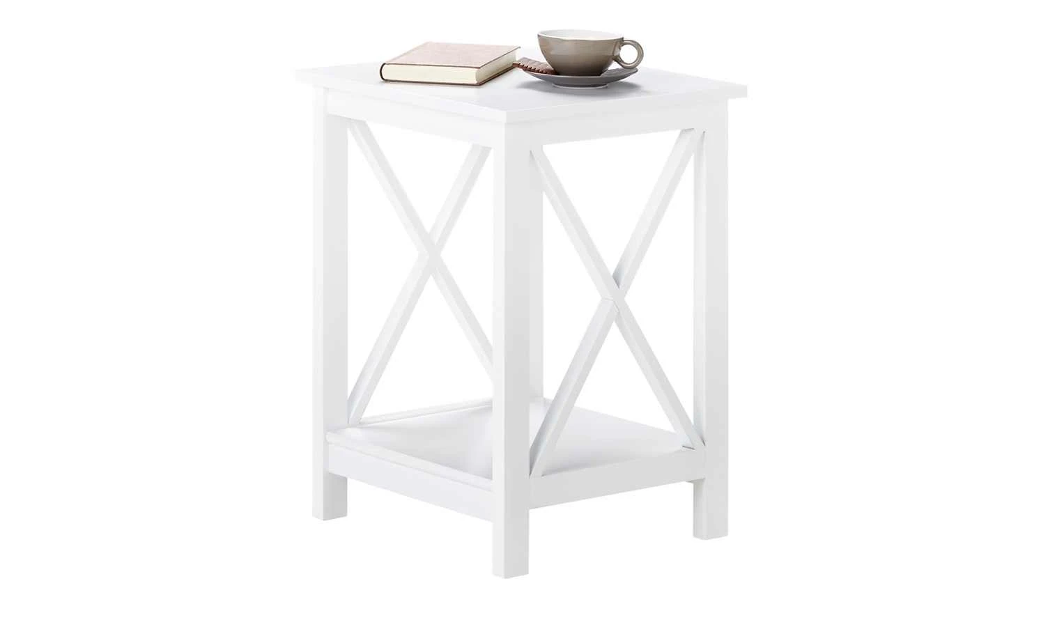 Ob neben der Couch oder wo auch immer Sie ihn brauchen, der Beistelltisch Mosi von Love it ist überaus praktisch. Die beiden Ablagen bieten genügt Platz, um auf ihnen Deko-Accessoires oder andere Dinge abzulegen. Mosi wurde komplett weiß lackiert und fällt durch seinen Landhausstil ins Auge. Ein Eyecatcher sind zum Beispiel die x-förmigen Verstrebungen an den Seiten.