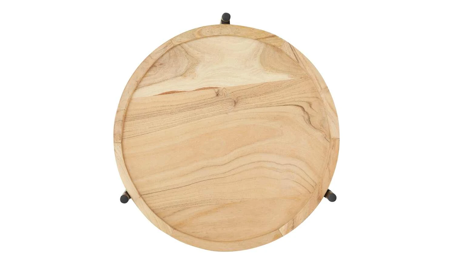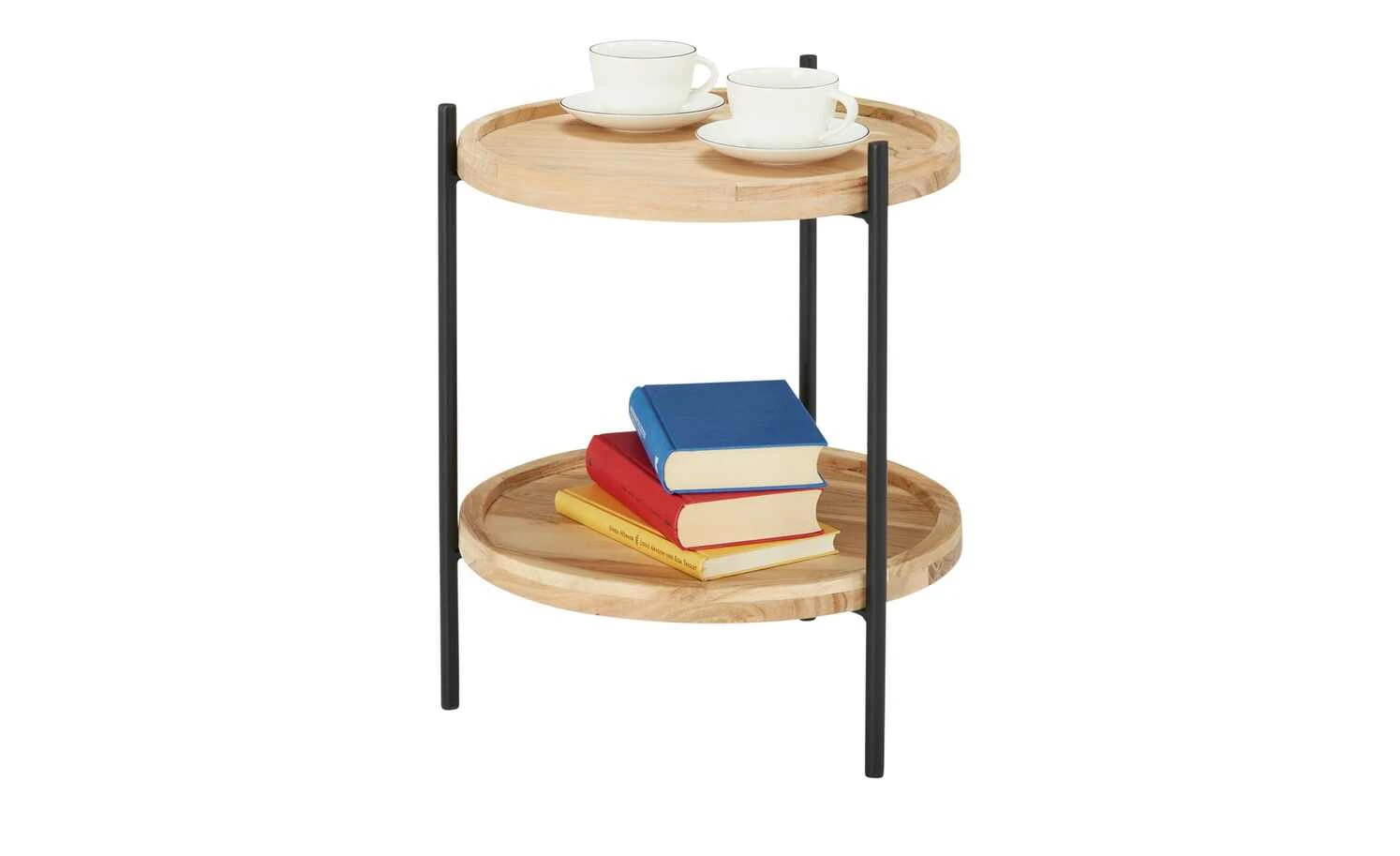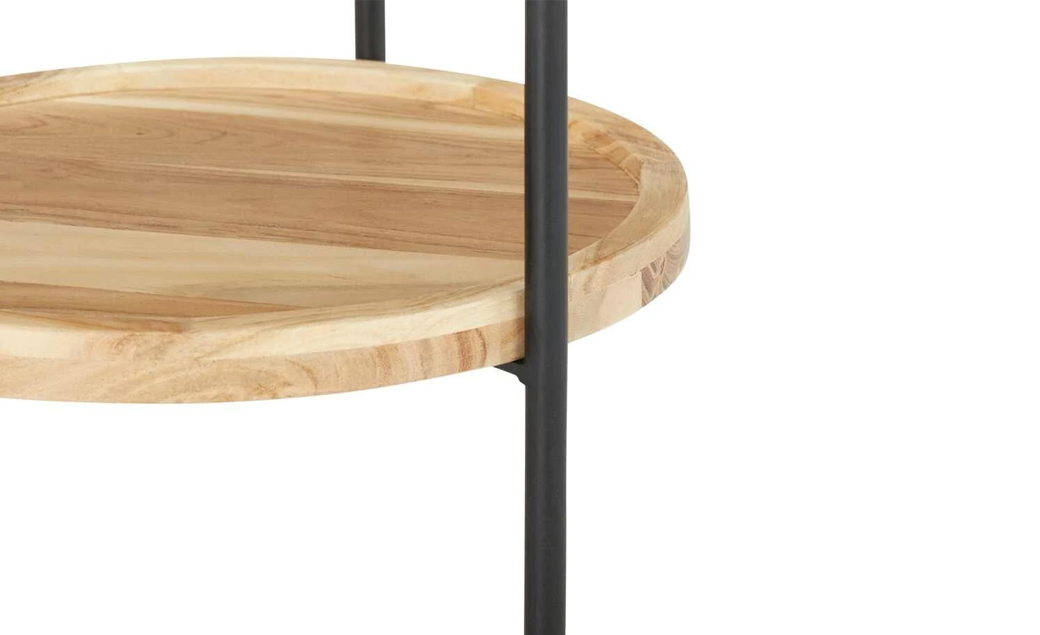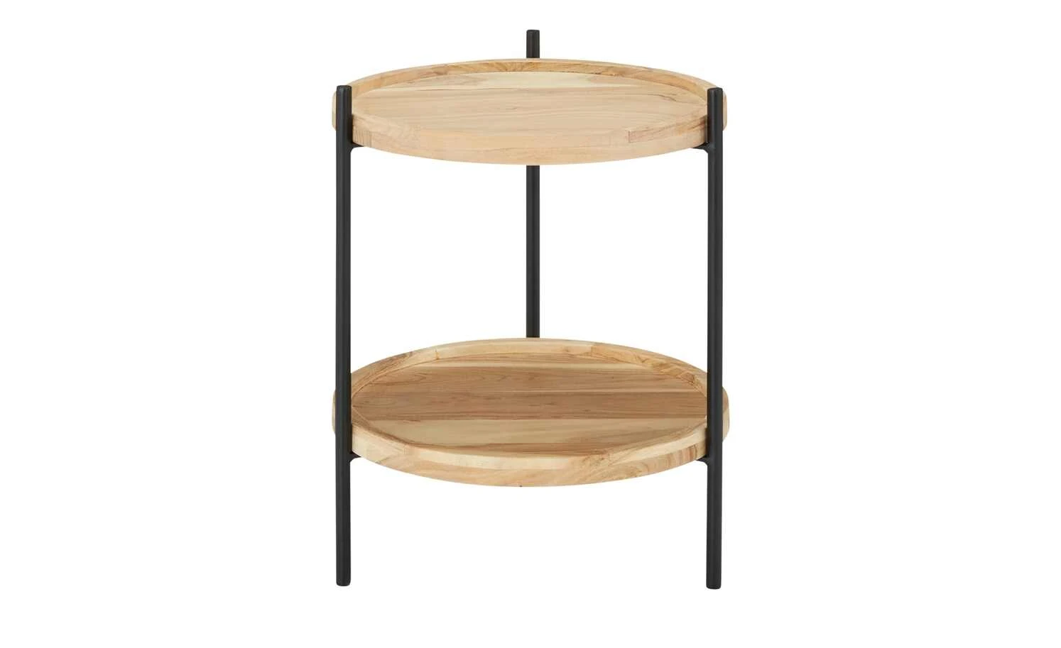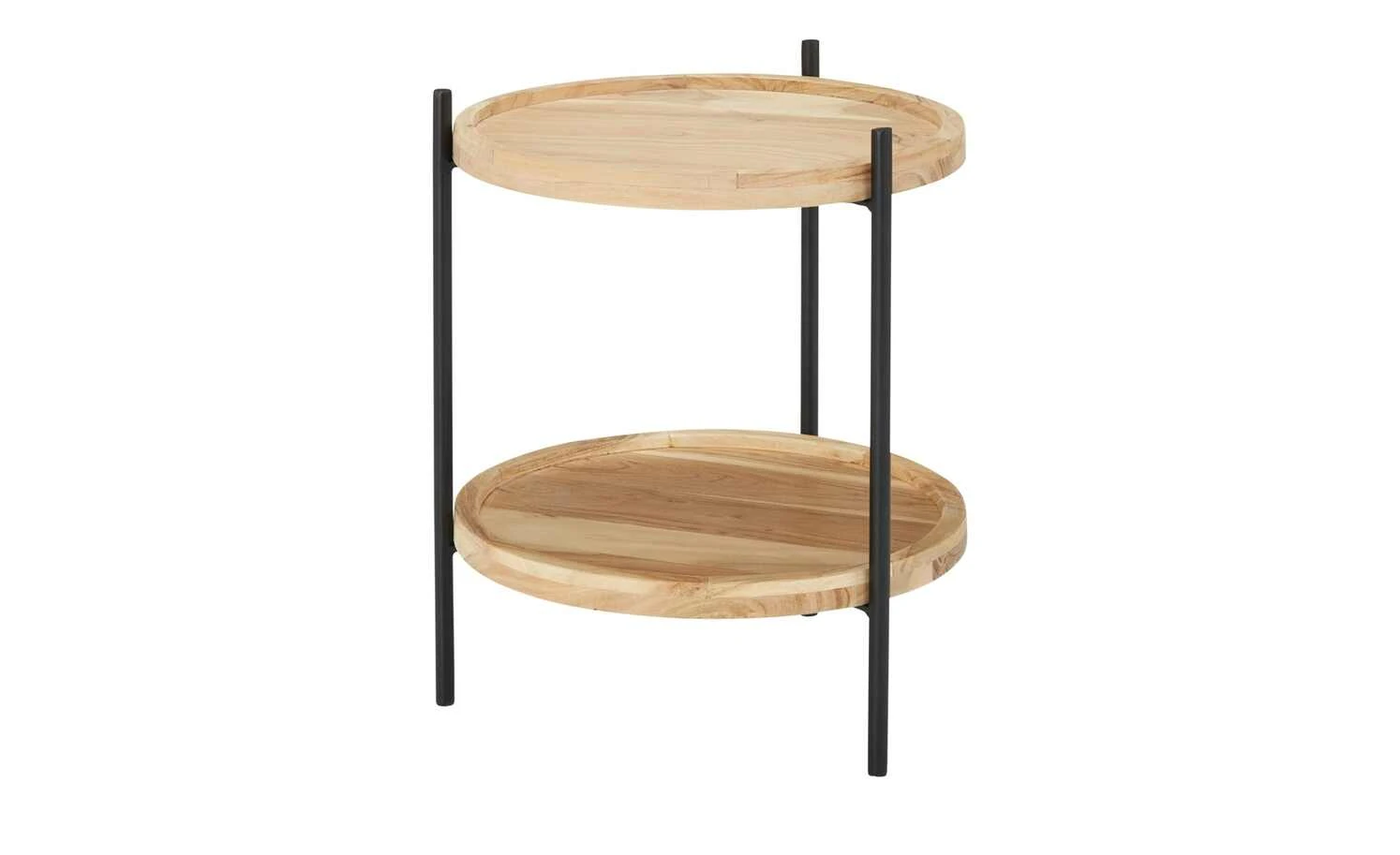 Der Beistelltisch Place greift den beliebten urbanen Loft-Stil gekonnt auf. Hier setzt schwarzes Metall einen bewussten Kontrast zu gebeiztem Akazienholz. Das robuste Dreifußgestell trägt die zwei runden Massivholzplatten mit einem Durchmesser von 43 Zentimetern. Die Tischplattenränder sind leicht erhöht, sodass Gegenstände nicht herunterrutschen. Die beiden Massivholzplatten sind gebeizt und wirken hell und freundlich. Dadurch kann der Beistelltisch Place in nahezu jeden Einrichtungsstil integriert werden.