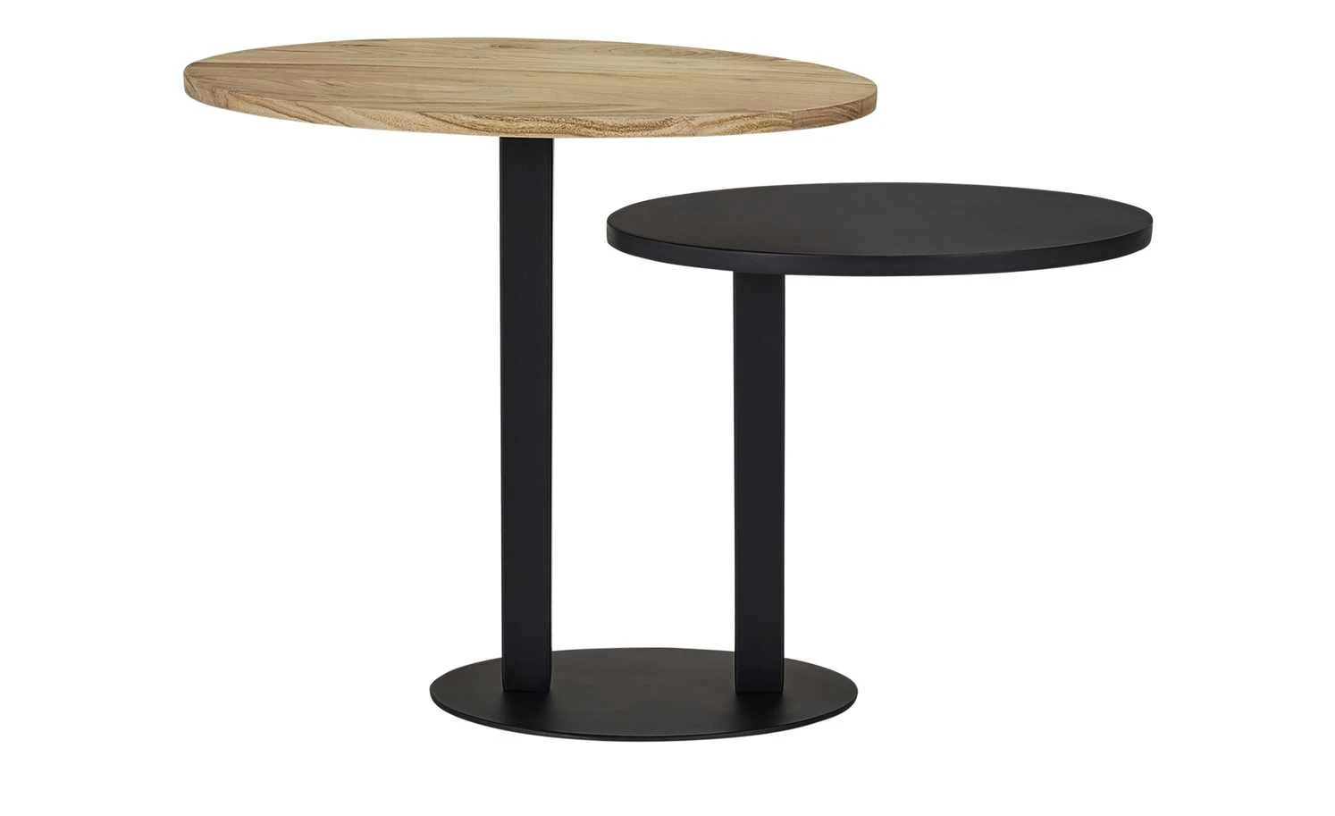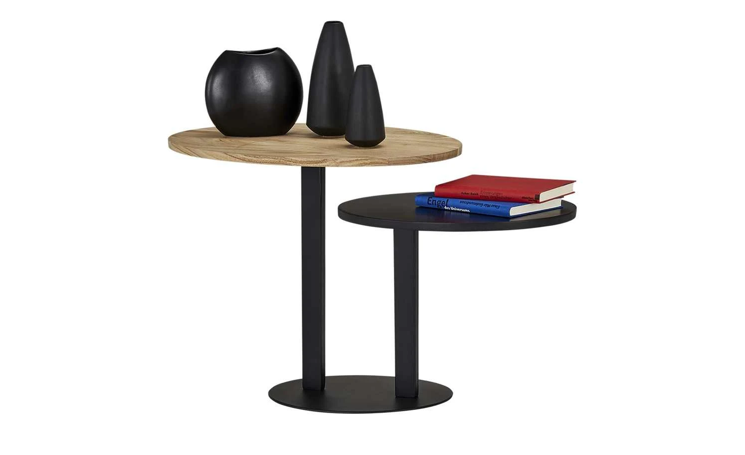 Der Beistelltisch Place greift den beliebten urbanen Loft-Stil gekonnt auf. Hier setzt schwarzes Metall einen bewussten Kontrast zu gebeiztem Akazienholz. Gleich zwei runde, leicht versetzte Ablageflächen stehen Ihnen zur Verfügung. Die obere Tischplatte wirkt durch das gebeizte Akazien-Massivholz hell und freundlich. Die untere ist ebenso wie das Gestell schwarz gehalten und wirkt als Kontrast-Part. Alle Oberflächen sind zum Schutz lackiert und dadurch pflegeleicht. Der Beistelltisch Place kann in diverse Raumkonzepte integriert werden.