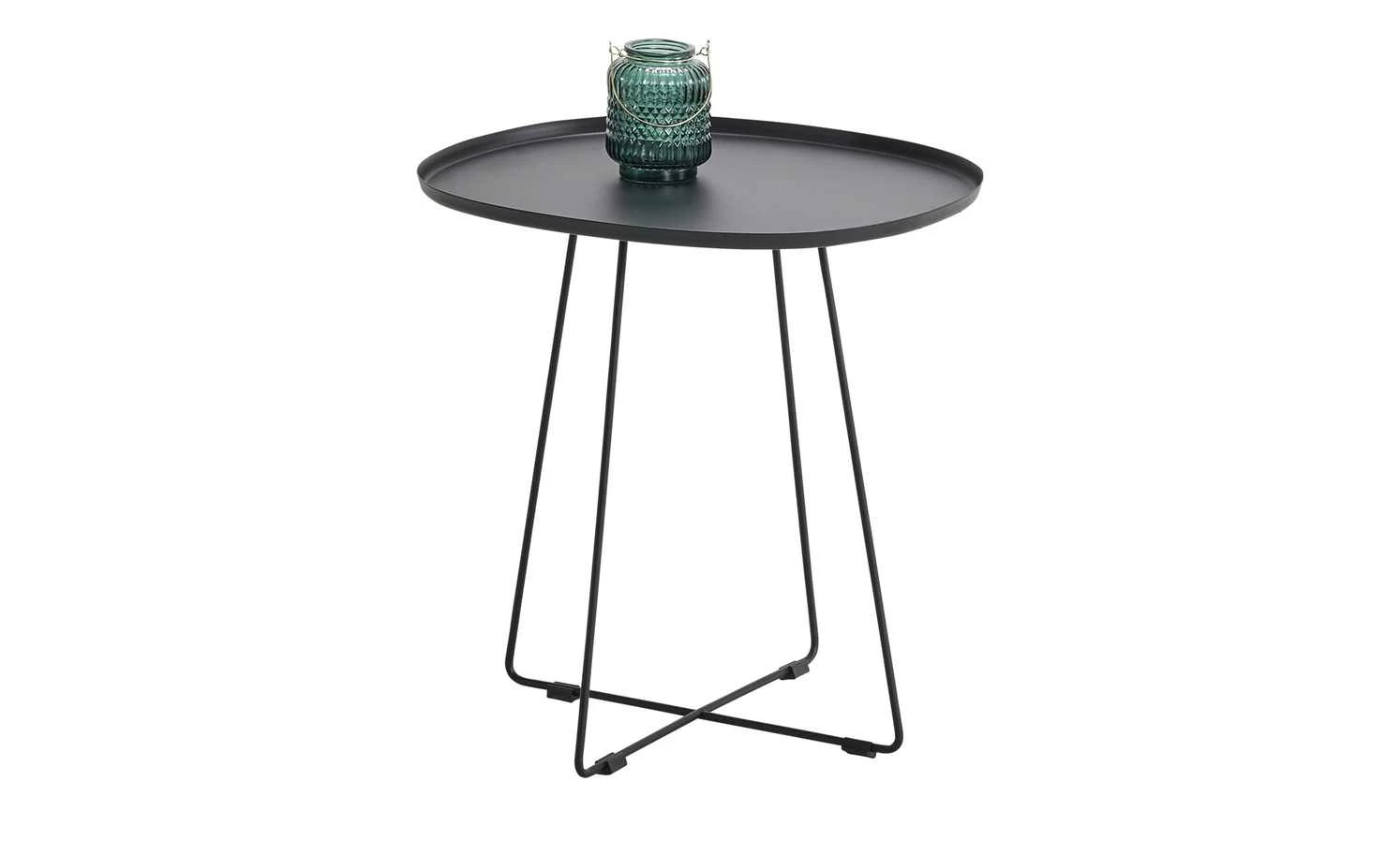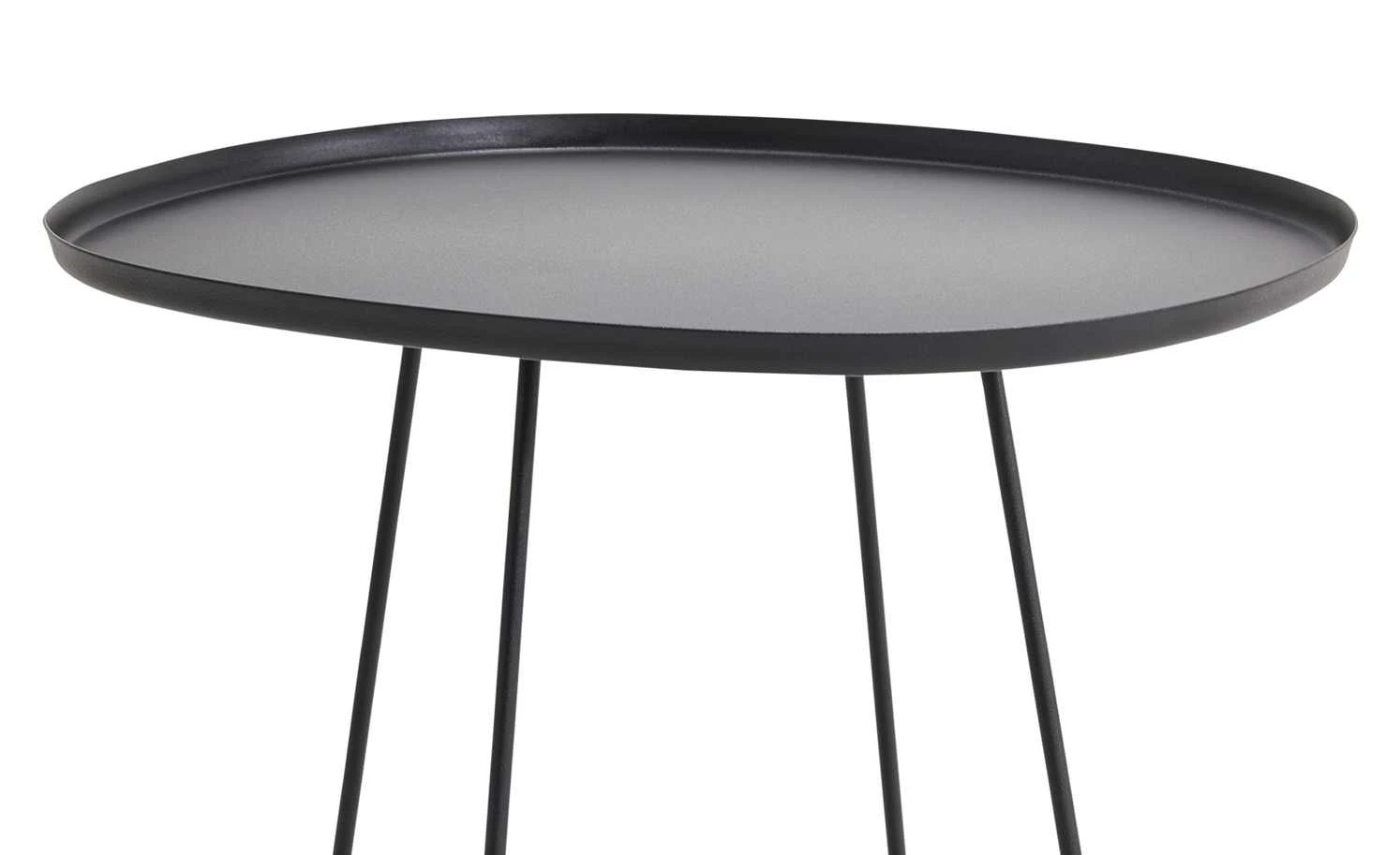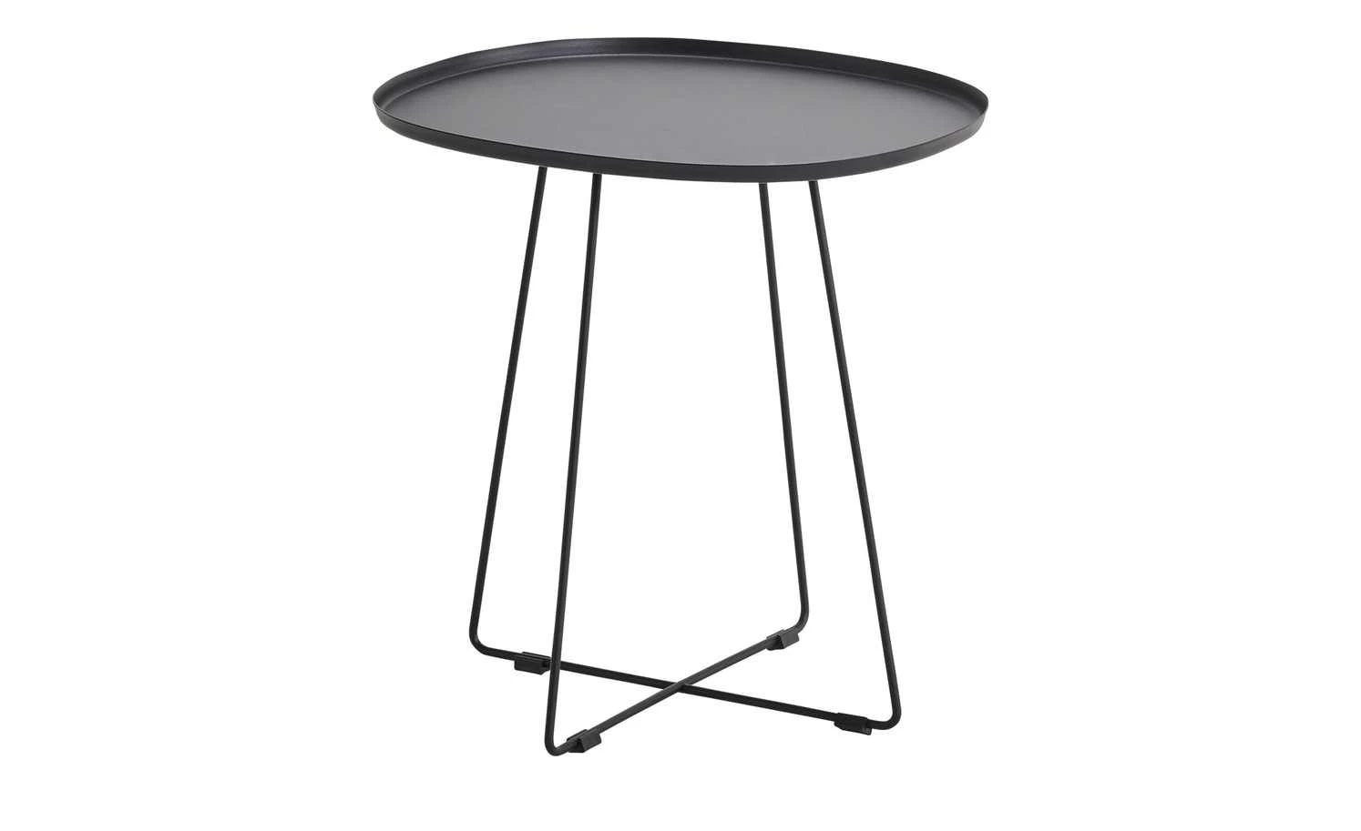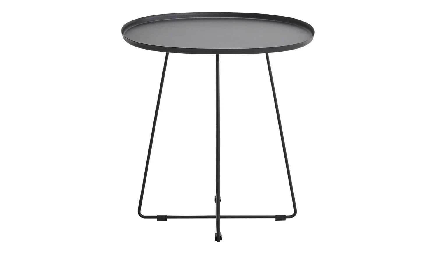 Einen angesagten Industrial-Look hat der Beistelltisch Valentino. Der gesamte Tisch ist aus stabilem Metall. Es ist pulverbeschichtet und hat einen matten Farbton in Schwarz. Die runde Tischplatte verfügt über einen leicht erhöhten Rand.
