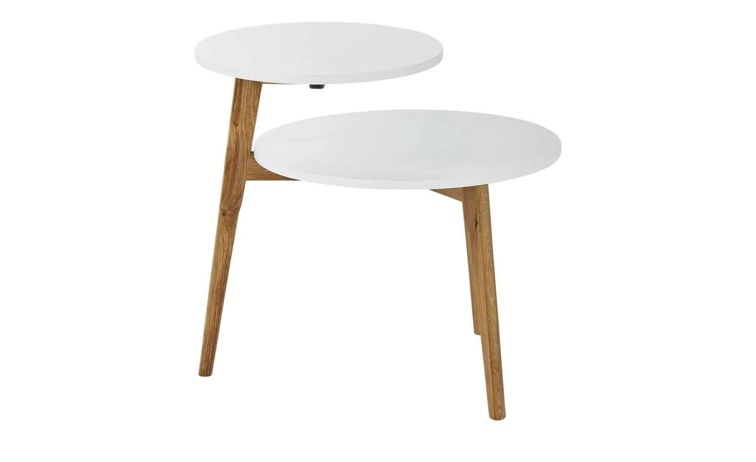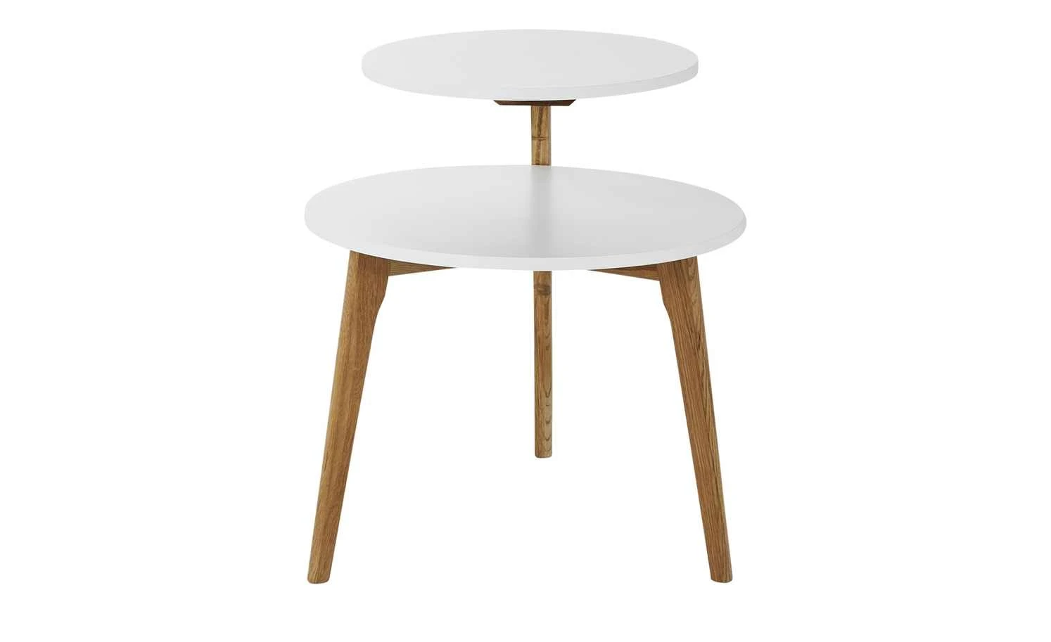 Der Beistelltisch Viale überzeugt mit skandinavischer Leichtigkeit. Für den stabilen Stand sorgt das 3-Fuß-Gestell aus massivem Eichenholz. Tischplatte und Ablage sind rund und stufenförmig angeordnet. Das ist praktisch und gibt dem Tischchen einen besonderen Twist.