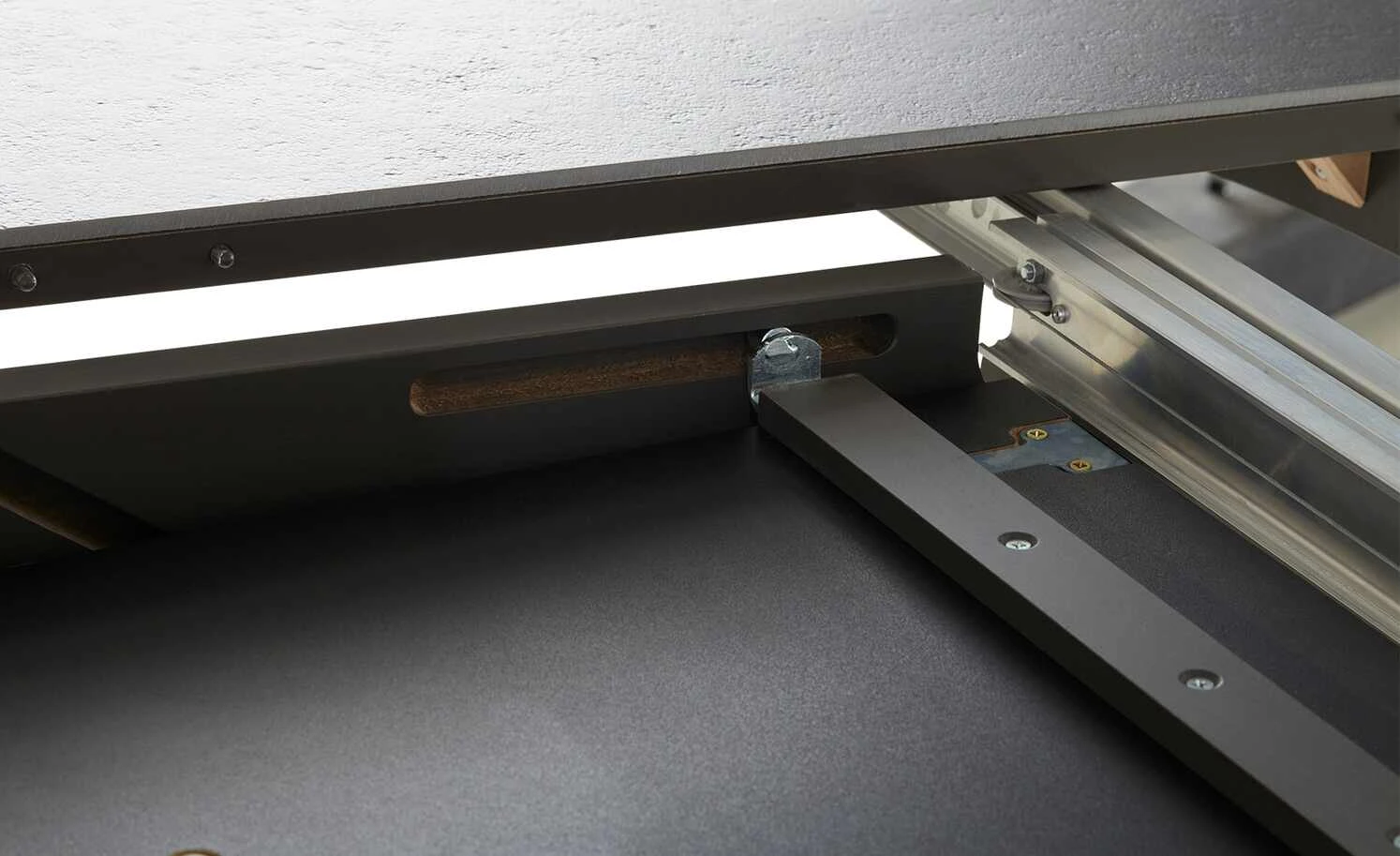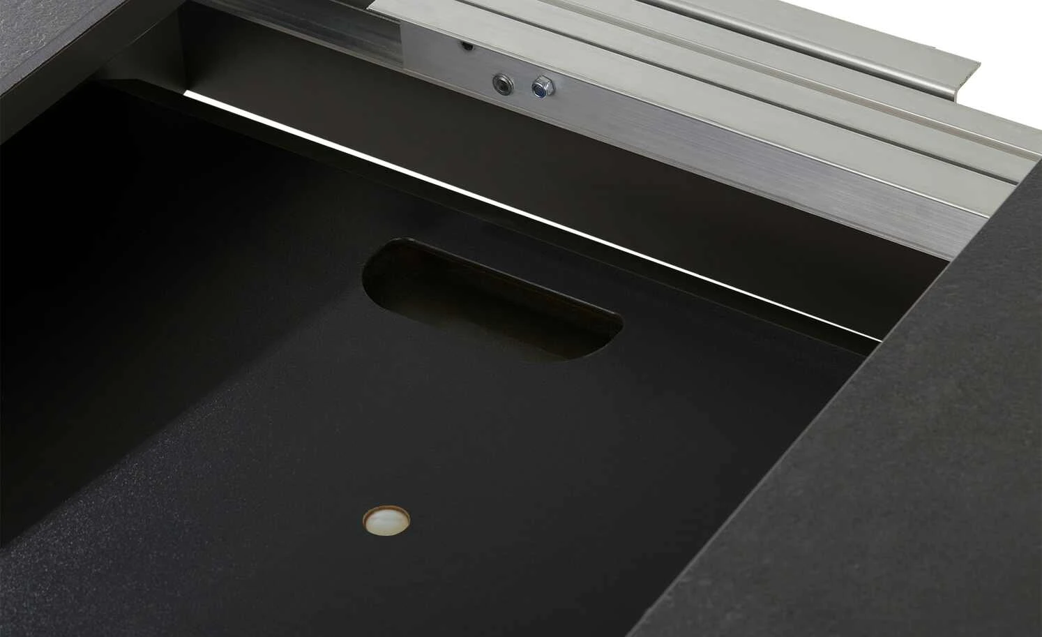 - Mehr zu Ausstattung / Funktion: Synchronauszug mit 1 innenliegenden Klappeinlage ca. 45 cm in HPL (High Pressure Laminate)