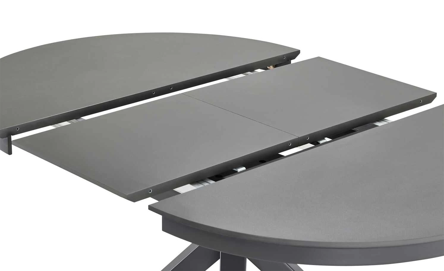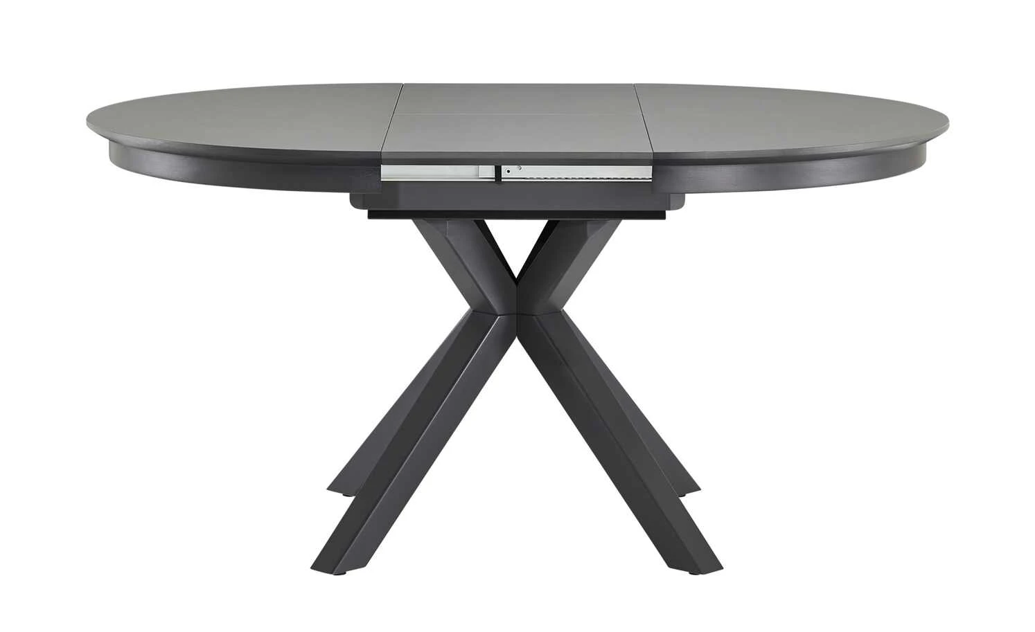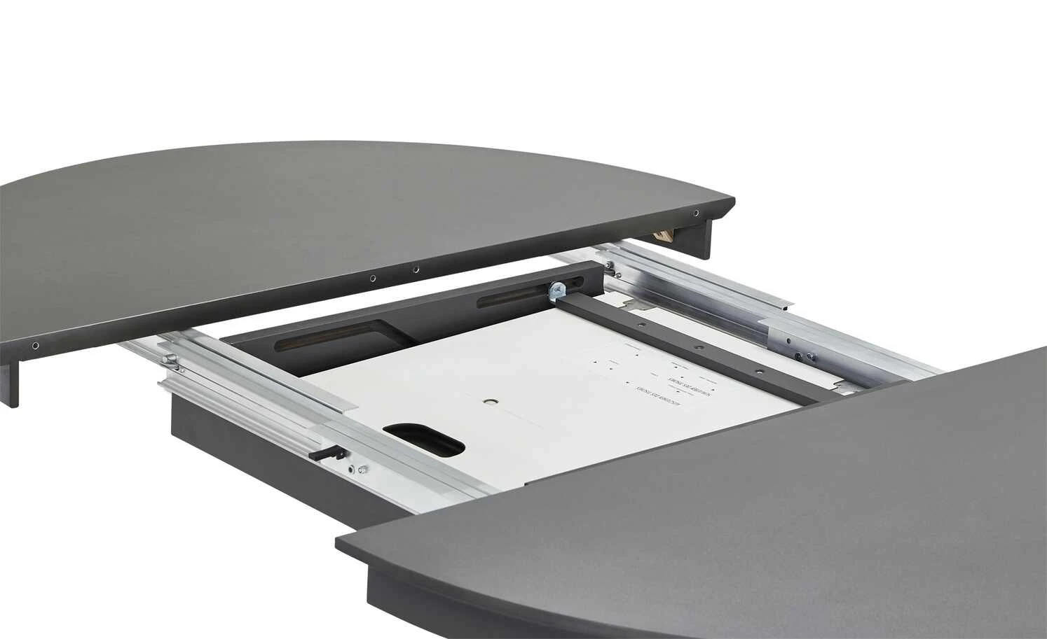 Die Marke Berger & Rath steht für formvollendetes Design und hohe Qualität. Das beste Beispiel: Der Esstisch Xeno. Die Oberflächen von Xeno sind matt lackiert und schimmern in einem edlen Anthrazit-Ton. Die runde Tischplatte bietet bei einem Durchmesser von 110 Zentimetern ausreichend Platz für bis zu vier Personen. Durch eine integrierte Klappeinlage kann Xeno um zwei Plätze erweitert werden. Der eingebaute Synchronauszug ist leicht zu bedienen und verlängert die Tischfläche auf 155 Zentimeter. Im Gegensatz zu anderen Säulentischen wirkt Xeno durch seine spezielle Tischbeinform geradezu zierlich. Der ausziehbare Esstisch lässt sich mit zahlreichen Einrichtungsstilen kombinieren.