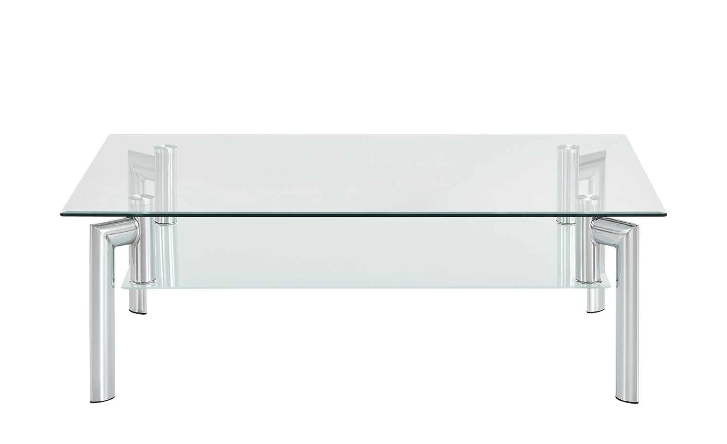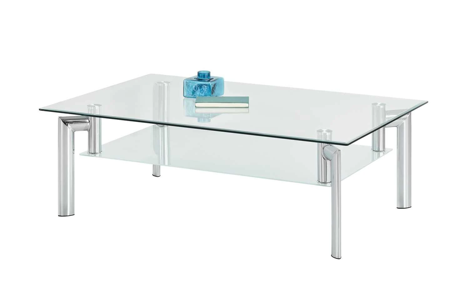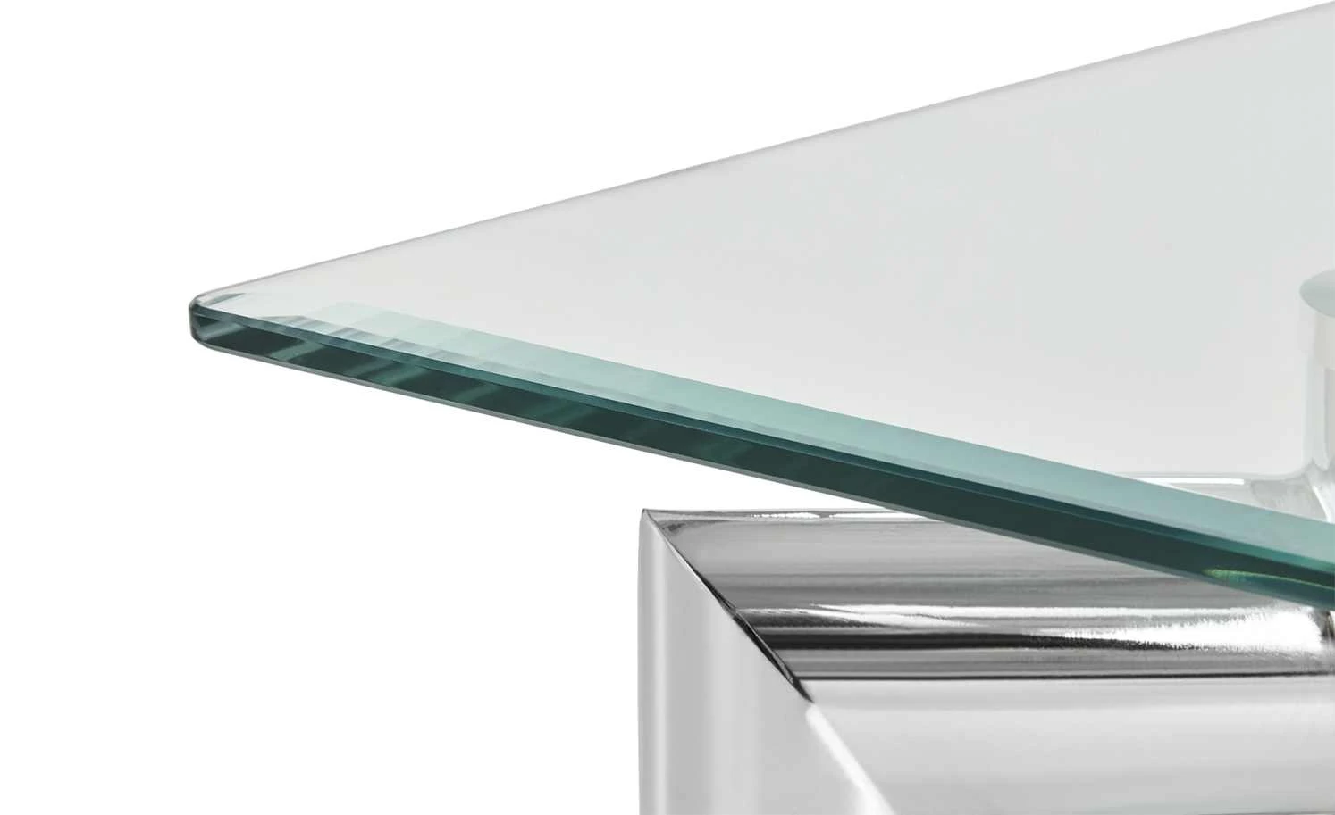 Glas und Metall im Mix sind zeitlos attraktiv. Das sehen Sie auch beim Couchtisch Bela I. Das Gestell ist aus verchromtem Metall gefertigt. Es sorgt für einen stabilen Stand und eleganten Glanz. Die rechteckige Tischplatte besteht aus klarem Sicherheitsglas. Der gesamte Rand ist mit einer dekorativen Facette – also einem speziellen Schliff – versehen. Die zusätzliche Ablage ist ebenfalls aus Sicherheitsglas gefertigt, wobei es mit seiner gefrosteten Optik punktet und sich so von der Tischplatte absetzt.