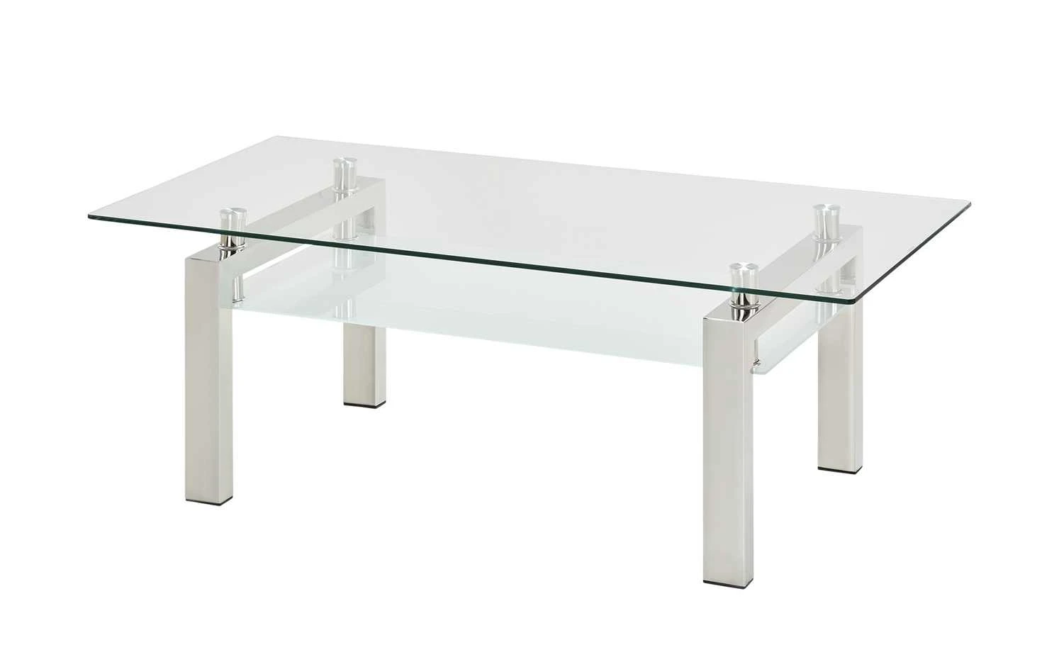 Für alle die auf kühlen Loft-Style stehen, empfehlen sich Möbel aus Glas und Metall. So wie den Couchtisch Beno I. Das Gestell aus poliertem Edelstahl trägt die Tisch- und Ablageplatte. Sie sind beide aus stabilem und pflegeleichtem Sicherheitsglas gefertigt. Während die rechteckige Tischplatte klar designt ist, setzt sich die Ablage durch ihr gefrostetes Finish ab.