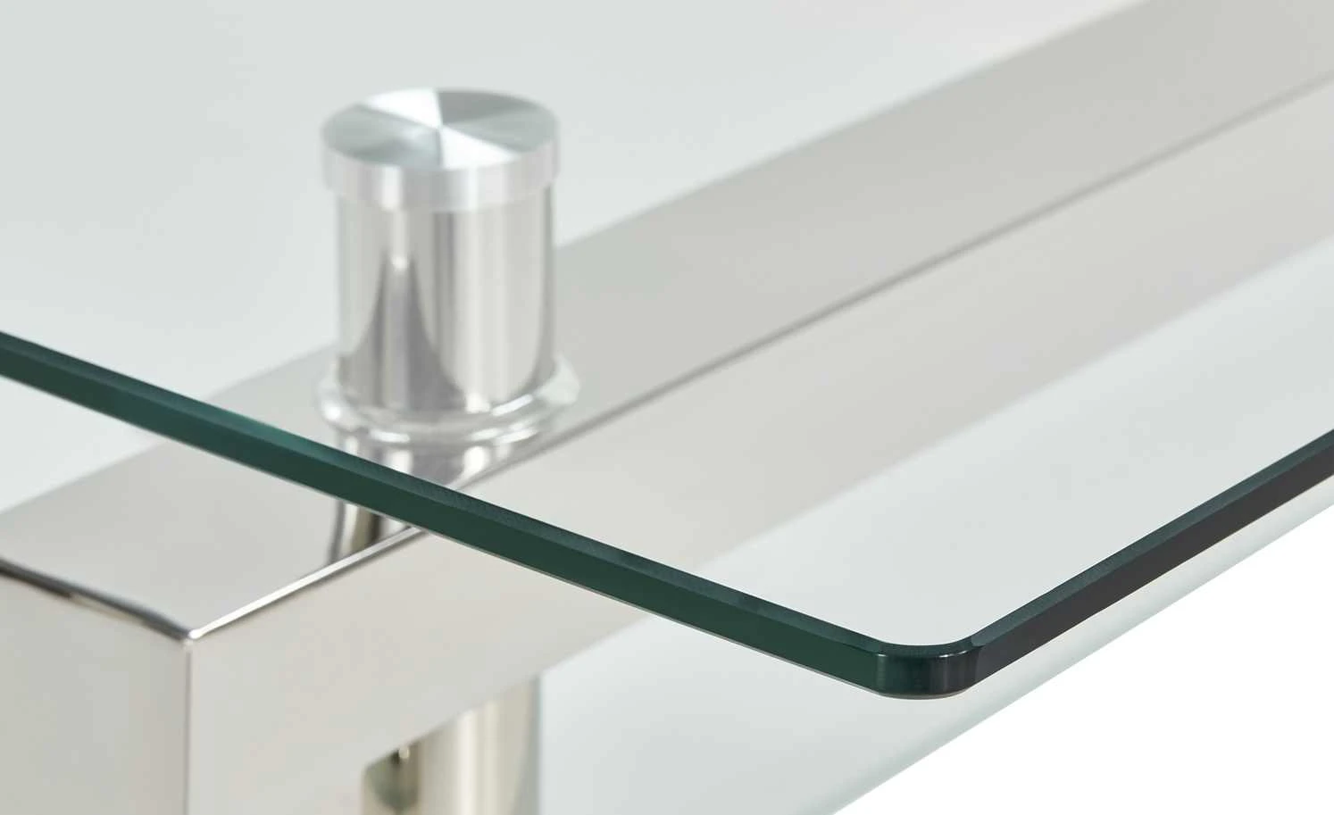 - Mehr zum Material: Ablageplatte: Sicherheitsglas gefrostet, Tischplatte: Sicherheitsglas