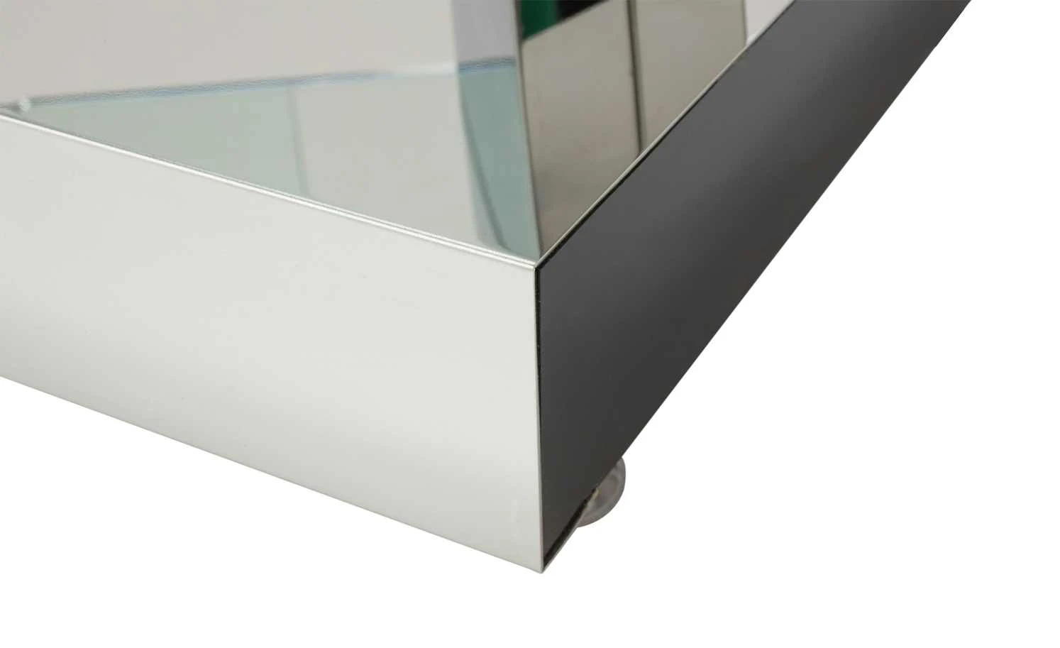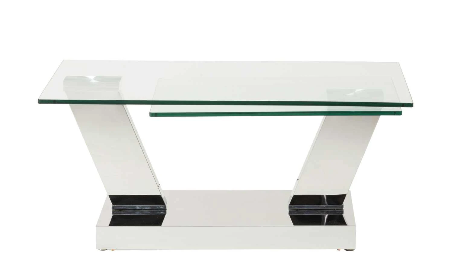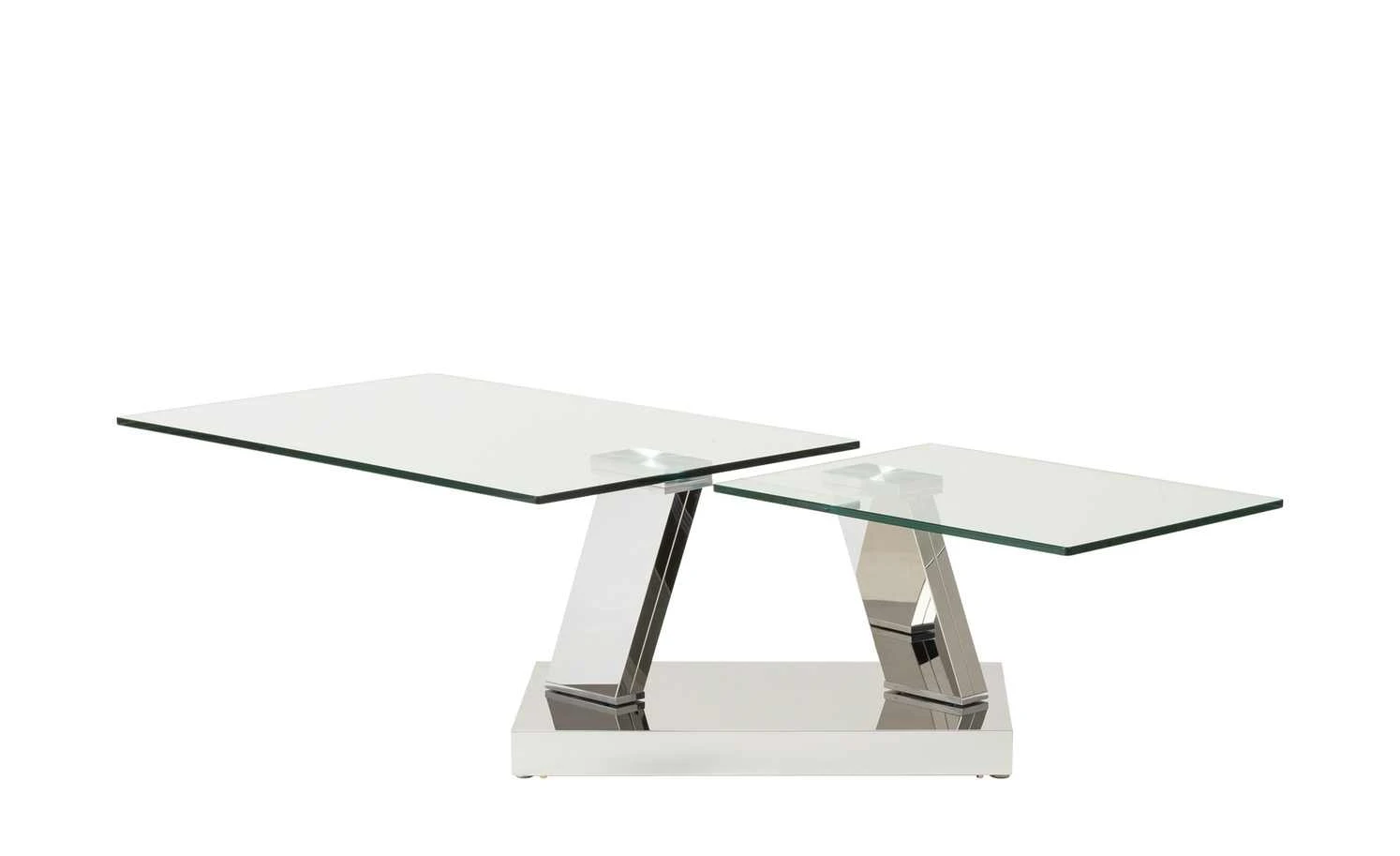 Die Materialwahl aus poliertem Edelstahl und Glas ergeben bei diesem Couchtisch Budelli einen eleganten und puristischen Look. Einen futuristischen Eindruck erhält man durch seine besondere drehbare Funktion. Die zwei Tischplatten werden synchron gedreht und können stufenlos ausgerichtet werden, wobei der Verstellmechanismus sehr leichtgängig ist. Die größere, obere Tischplatte kann dabei die kleinere überlagern, oder gar komplett verdecken. Sie entscheiden selbst, wie viel Fläche Sie benötigen. Das macht diesen Couchtisch Budelli nicht nur vielseitig in der Anmutung, sondern auch komfortabel und flexibel in der täglichen Anwendung in Ihrem Zuhause.