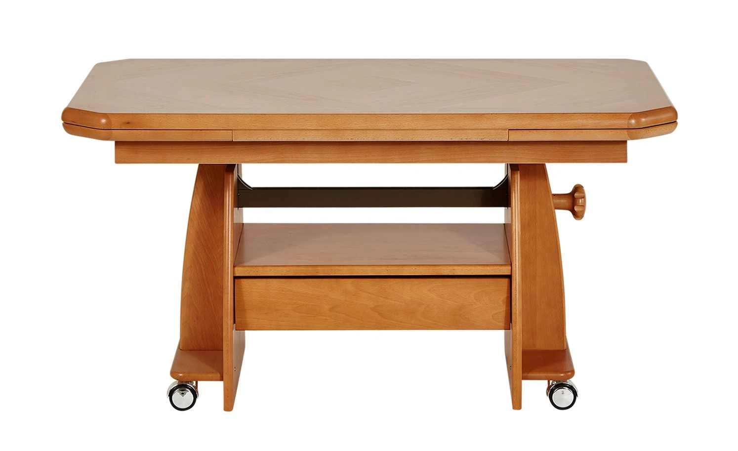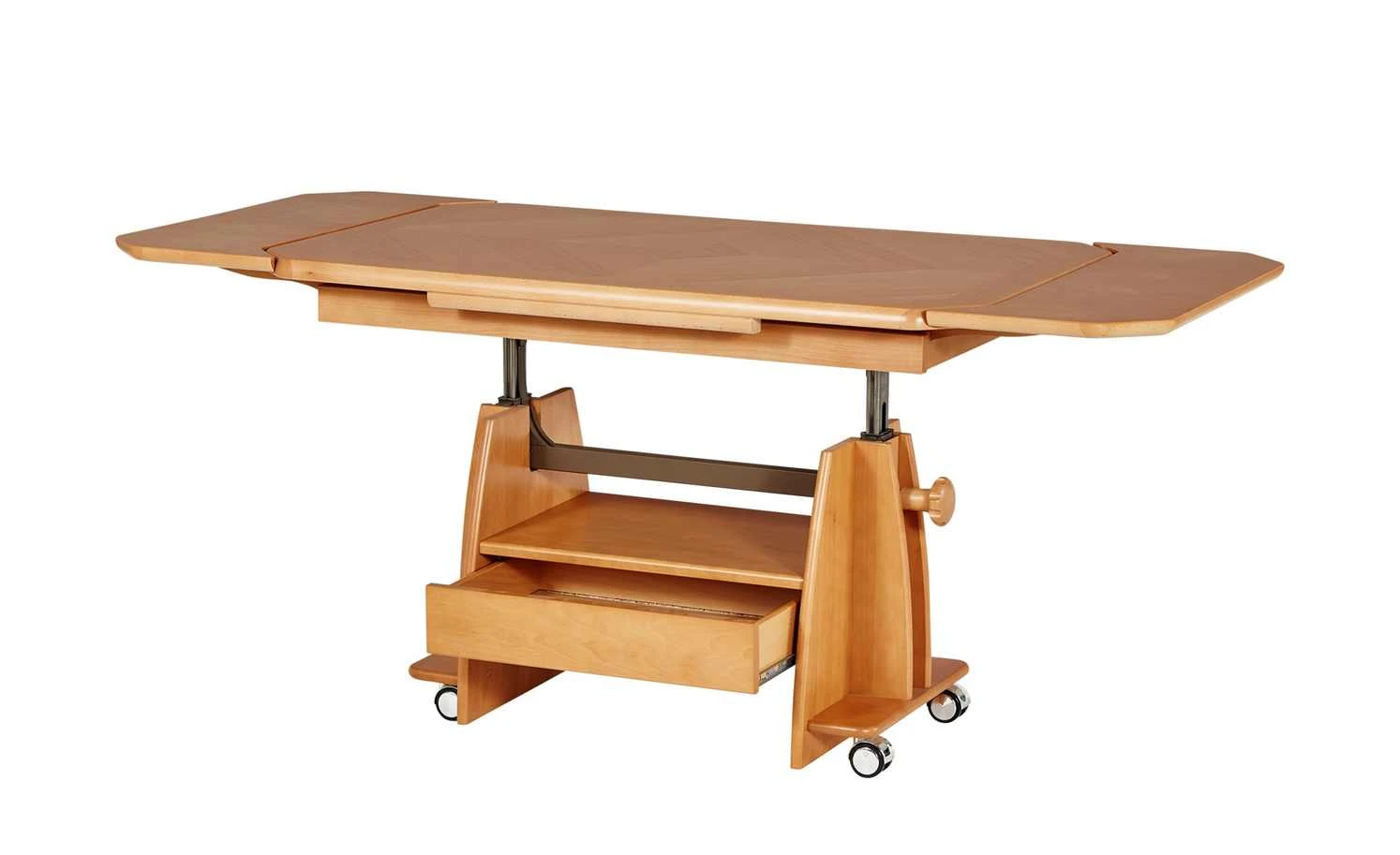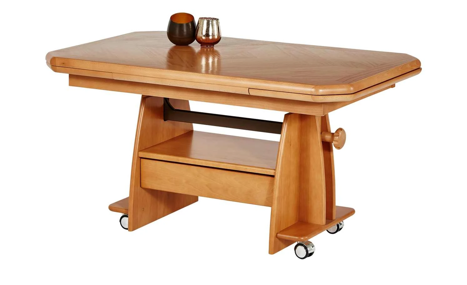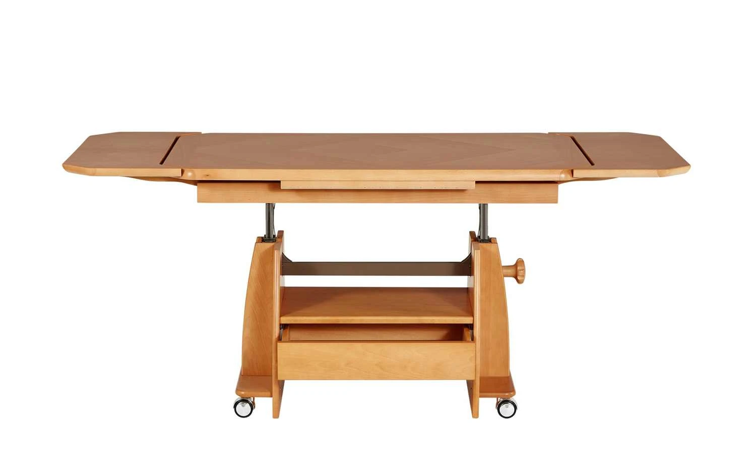 Qualität, Funktionalität und Optik gehen beim Couchtisch Hamal Hand in Hand. Hamal besteht aus hochwertigen Materialien. Für die Tischplatte ist ein hochwertiges Buchenfurnier verwendet worden. Das gesamte Gestell besteht aus massivem Buchenholz. Die Holzoberflächen sind mit einem Lack behandelt worden. Er veredelt das Naturmaterial nicht nur, sondern schützt es auch. Die Tischhöhe können Sie manuell von 55 bis 65 Zentimeter verstellen. Das geht mittels eines Knopfes am Gestell. Auch die Größe der Tischplatte ist variabel. Die Länge lässt sich von 110 auf 160 Zentimeter variieren. Durch die vier Kunststoffrollen können Sie Hamal flexibel an den gewünschten Ort bewegen.
