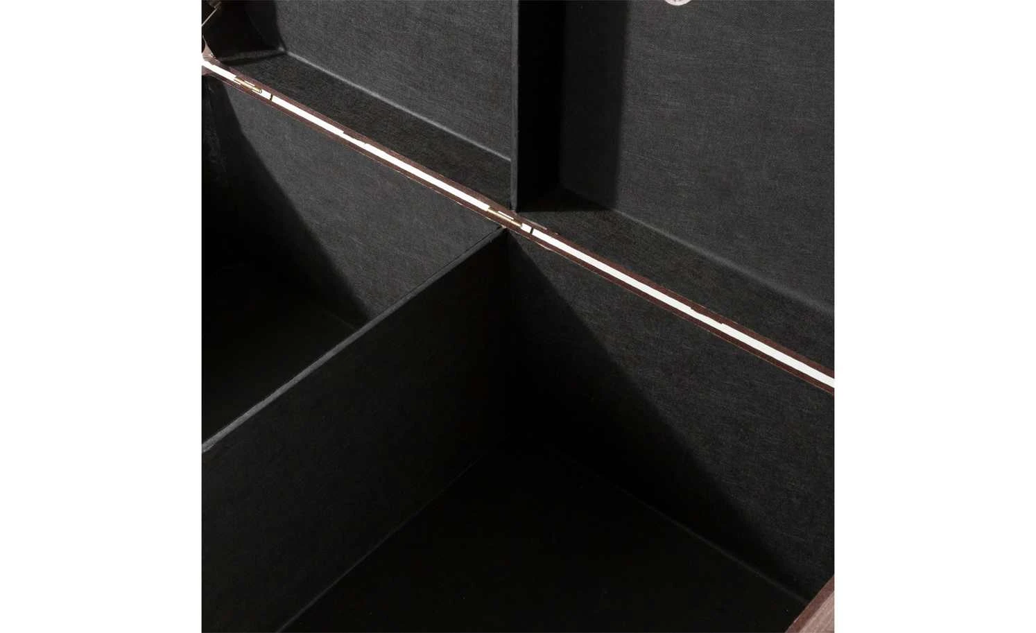 - Mehr zum Material: Materialart: Holzwerkstoff Bezogen, Kanten und Korpus: Kunstleder (95% Polyvinylchlorid, 3,25% Polyester, 1,75% Rayon), Innen: 100% Polypropylen