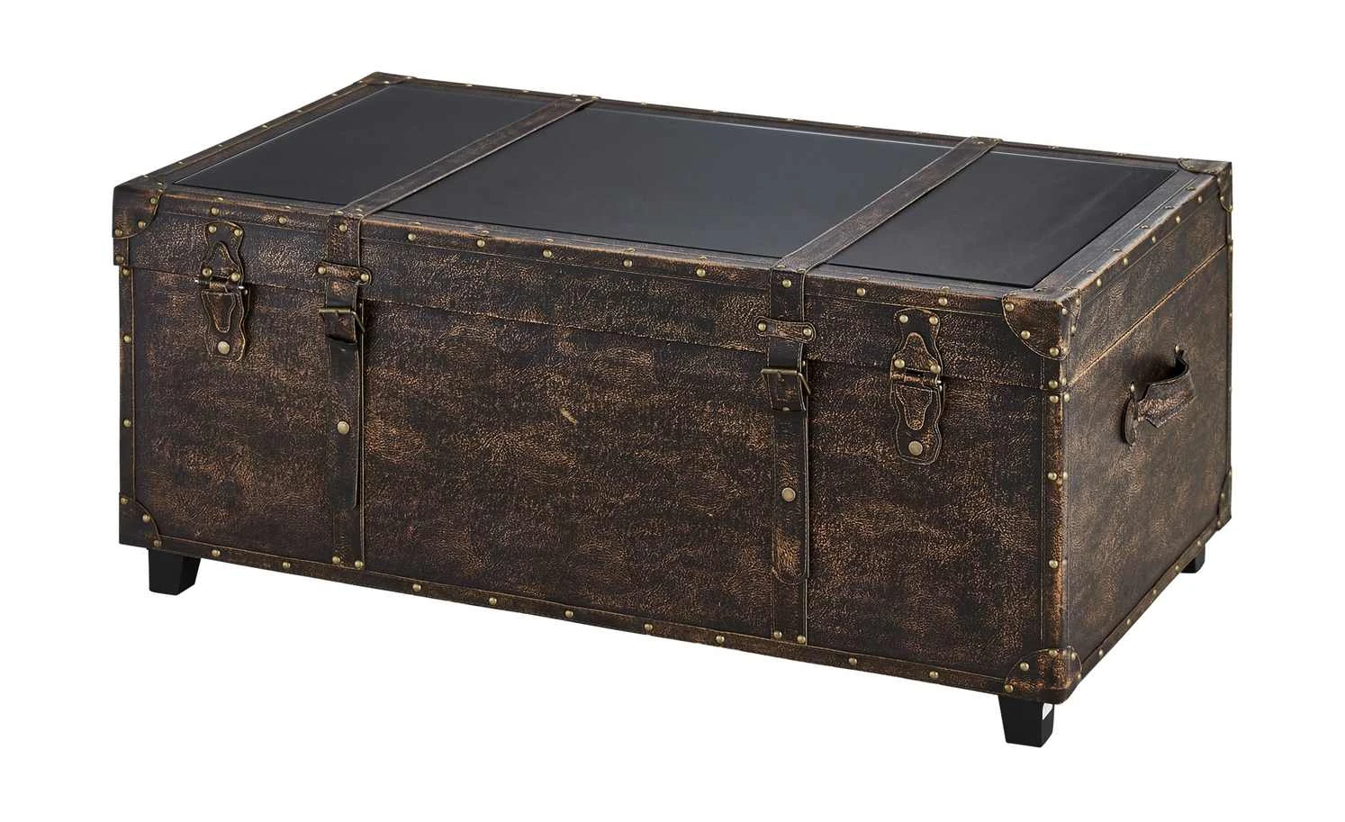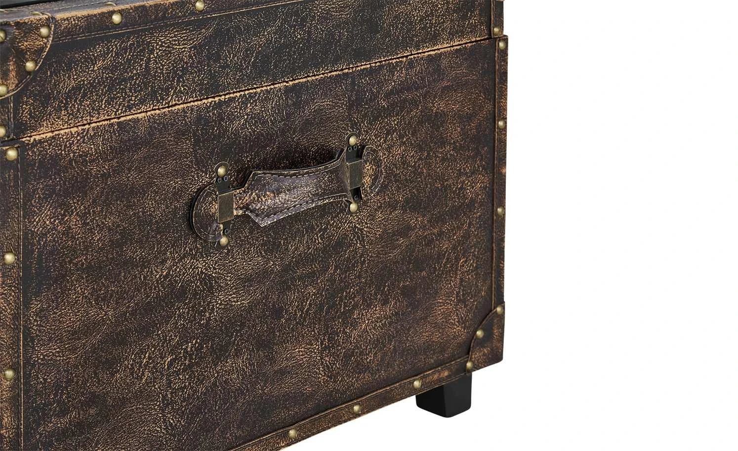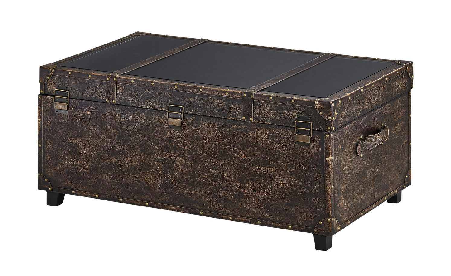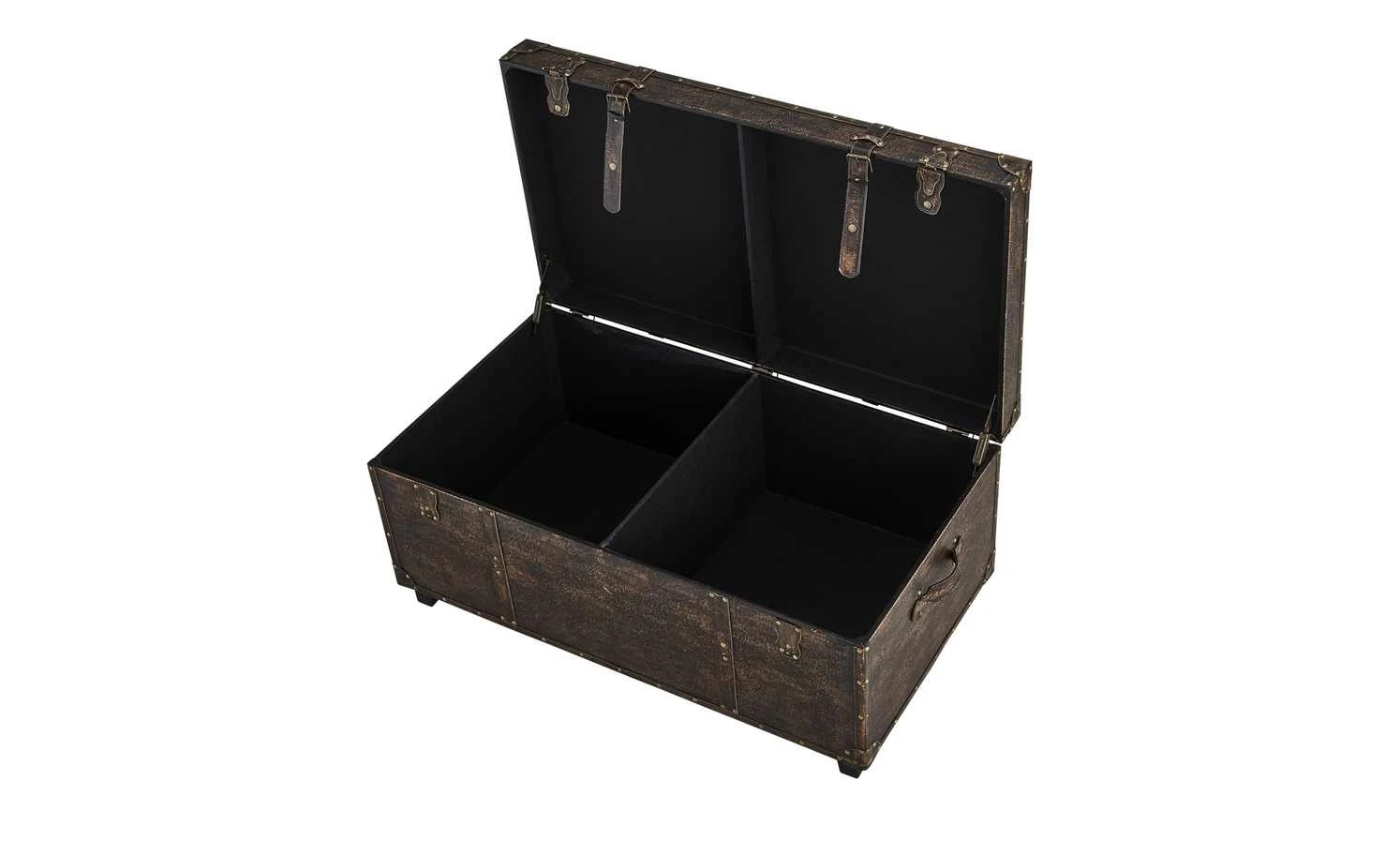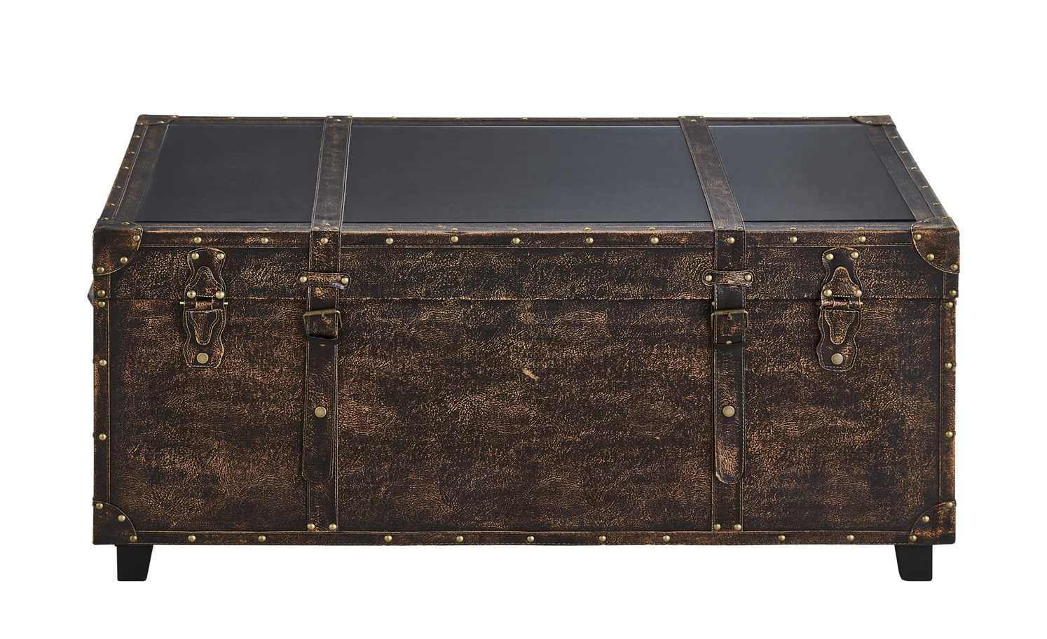 Der Couchtisch Gavi zeigt, dass es Alternativen zum klassischen Couchtisch im Wohnzimmer gibt. Er bietet Platz für Fernweh und jede Menge Kleinigkeiten. Auch im größten Wohnzimmer braucht man viel Stauraum. Zeitschriften, Bücher, Spiele und allerlei Kleinigkeiten sind am besten untergebracht, wenn Sie griffbereit in der Nähe sind. Auch Kissen und Wolldecken finden hier ihren Platz. Der Wohnzimmertisch im Koffer-Design verstaut und versteckt so einiges. Die braune Farbe sowie die aufgesetzten Griffe und Schnallen verleihen dem Couchtisch den angesagten Shabby Chic.