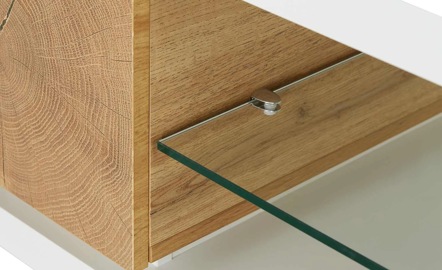 - Farbe / Dekor: Weiß / Eiche (Nachbildung)