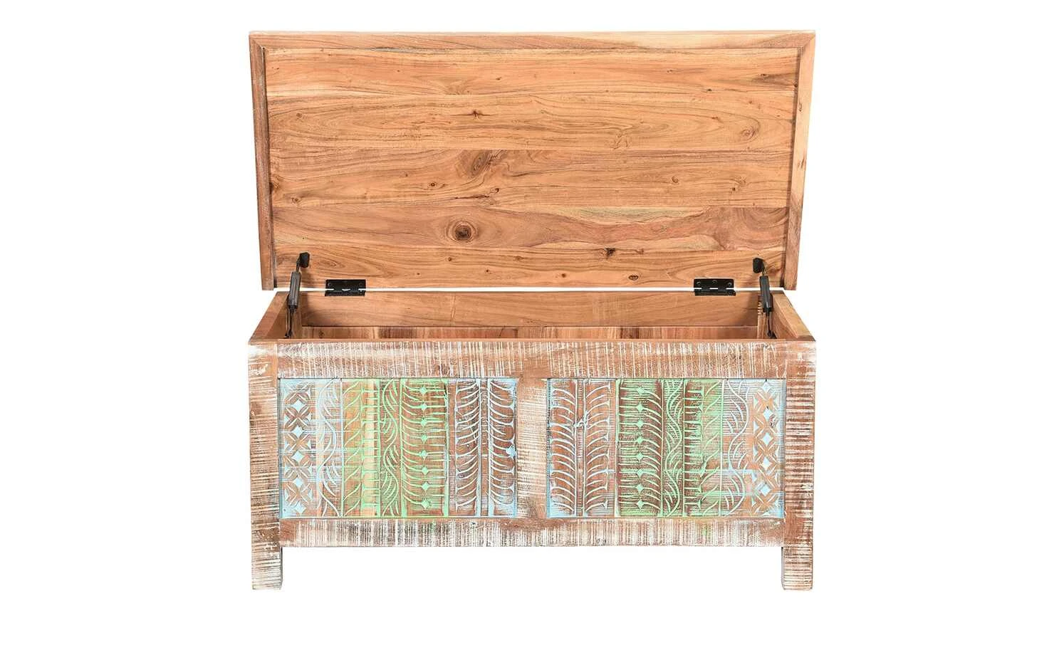 - Mehr zu Ausstattung / Funktion: mit Schnitzereien an den Fronten, Stauraum unter der Klappe