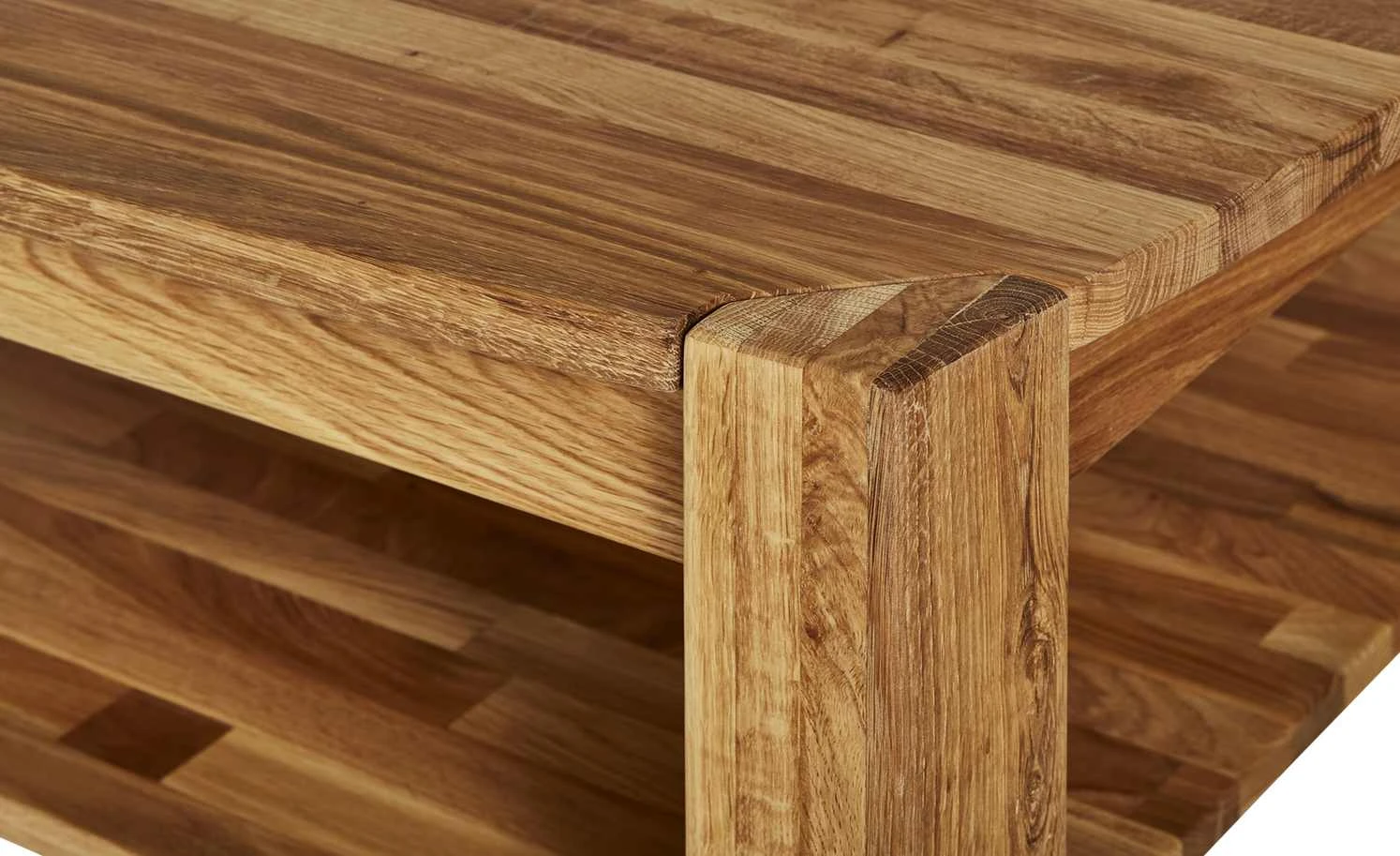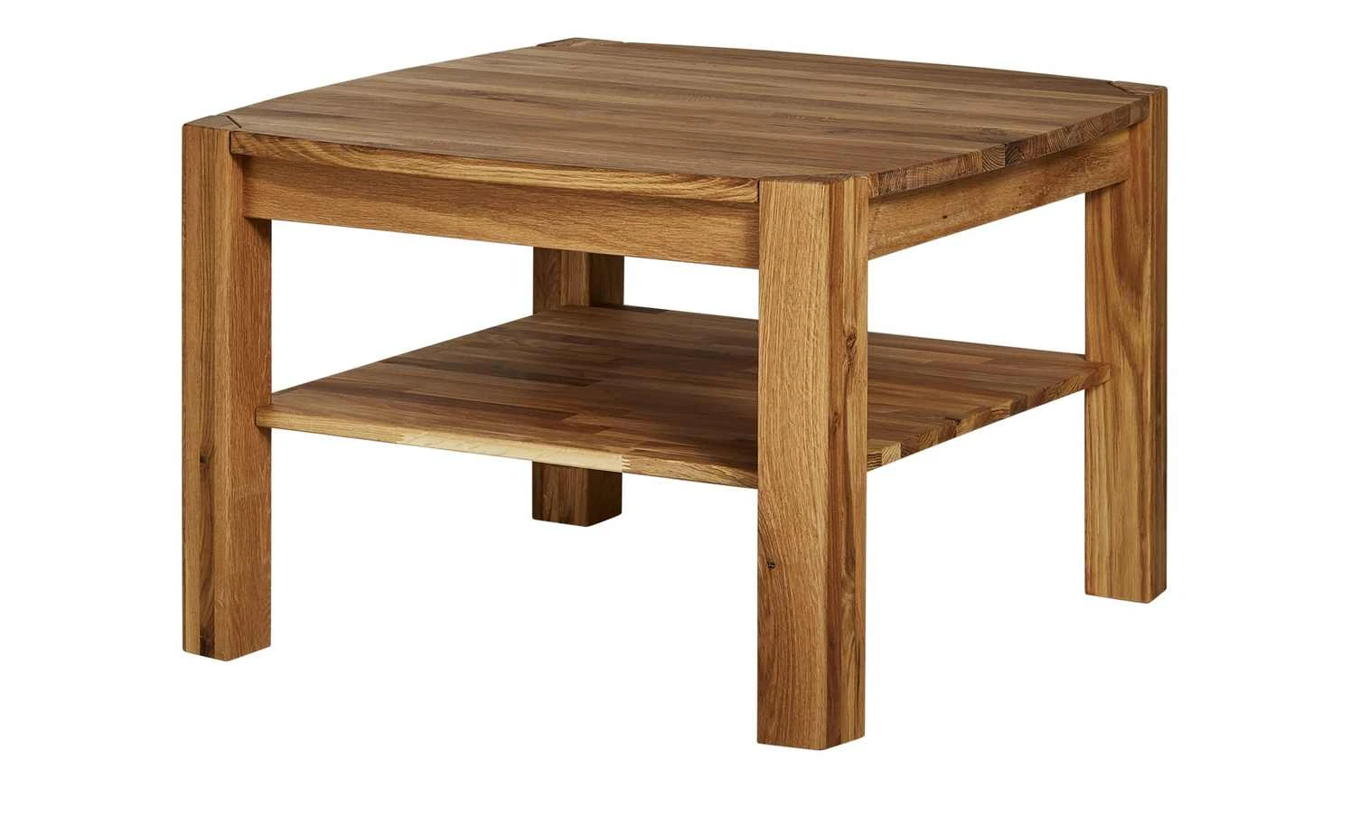 Asteiche ist eine besondere Form des Eichenholzes. Sie hat eine ausgeprägte, rustikale Maserung. Dazu gehören Farbunterschiede und Asteinschlüsse, die der Eichensorte ihren Namen geben. Der Couchtisch Malakula besteht aus massiver Asteiche. Die Oberfläche des Holzes ist mit einem Öl versiegelt worden. Neben der quadratischen Tischplatte verfügt Malakula über eine zusätzliche Ablage. Das 4-Fußgestell sorgt für einen stabilen und sicheren Stand des Tisches.