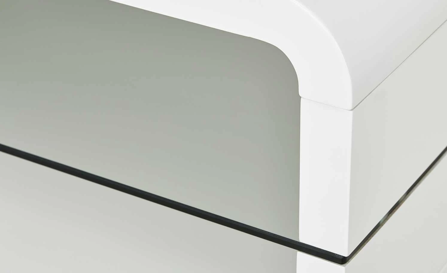 - Mehr zum Material: Ablageplatte: Sicherheitsklarglas 8mm, Tischplatte und Korpus: MDF-Platte