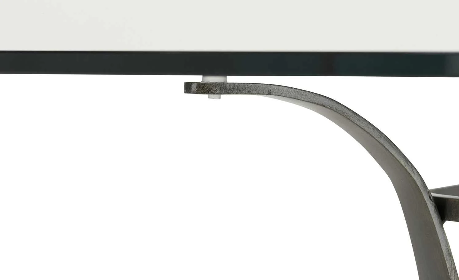 - Mehr zum Material: Material Gestell: Stahl, brüniert, Tischplatte 10mm stark, Einscheibensicherheitsglas