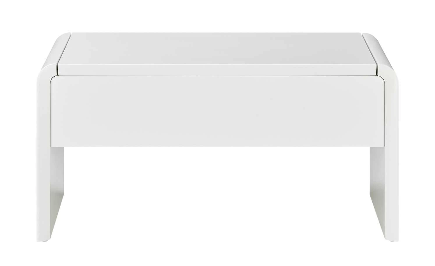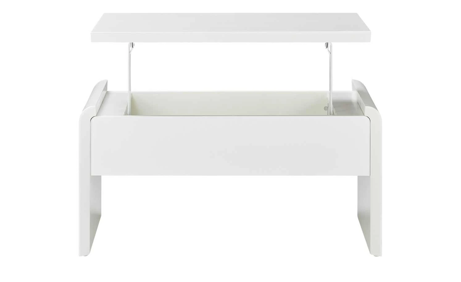 Ein kleines Multitalent ist der Couchtisch Ponza. In Sekunden können Sie die Tischhöhe ganz einfach von 46 Zentimetern auf 70 Zentimeter ändern. Dann hat die Tischplatte eine angenehme Höhe zum Arbeiten an Laptop, Tablet und Co. Mit der Liftfunktion ist das Verstellen der Tischplatten kinderleicht. Unter der höhenverstellbaren Tischplatte finden außerdem Magazine und Fernbedienungen Platz. Durch sein schlichtes Design und der zeitlosen Farbe Weiß fügt sich der Couchtisch Ponza in nahezu jeden Raum problemlos ein.