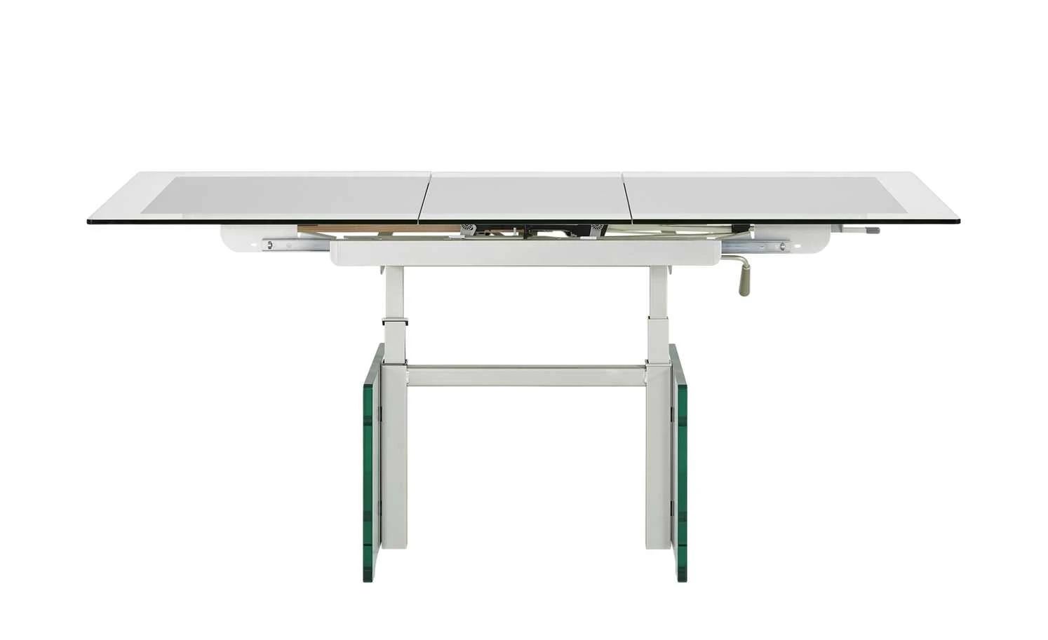 Der Couchtisch Villingen ist ein multifunktionales Wunder. Sie können ihn in der Höhe verstellen. Das ist zwischen 56 und 75 Zentimetern stufenlos möglich. Durch die LIFT-Mechanik funktioniert die Verstellung durch eine einfache Hebelbewegung. Darüber hinaus können Sie die Tischplatte ausziehen. Der Mittelauszug verlängert den Tisch um 40 Zentimeter. Villingen ist aus Glas und Stahl gefertigt. Für die Tischplatte wurde Sicherheitsglas verwendet, das deutlich widerstandsfähiger ist.