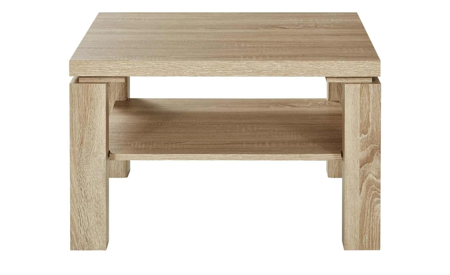 Durch sein zeitloses Design passt der Couchtisch Morgo zu vielen Einrichtungsstilen. Die rechteckige Tischplatte ist schön groß, außerdem verfügt Morgo über eine zweite Ablageplatte. Dadurch ergeben sich vielseitige Ablage- beziehungsweise Stellmöglichkeiten. Ein optisches Highlight ist die leicht versetzte Verbindung zwischen Tischbeinen und –platte. Der Tisch hat eine natürlich wirkende Holzoptik (Nachbildung), die zur zeitlosen, gradlinigen Formgebung passt.