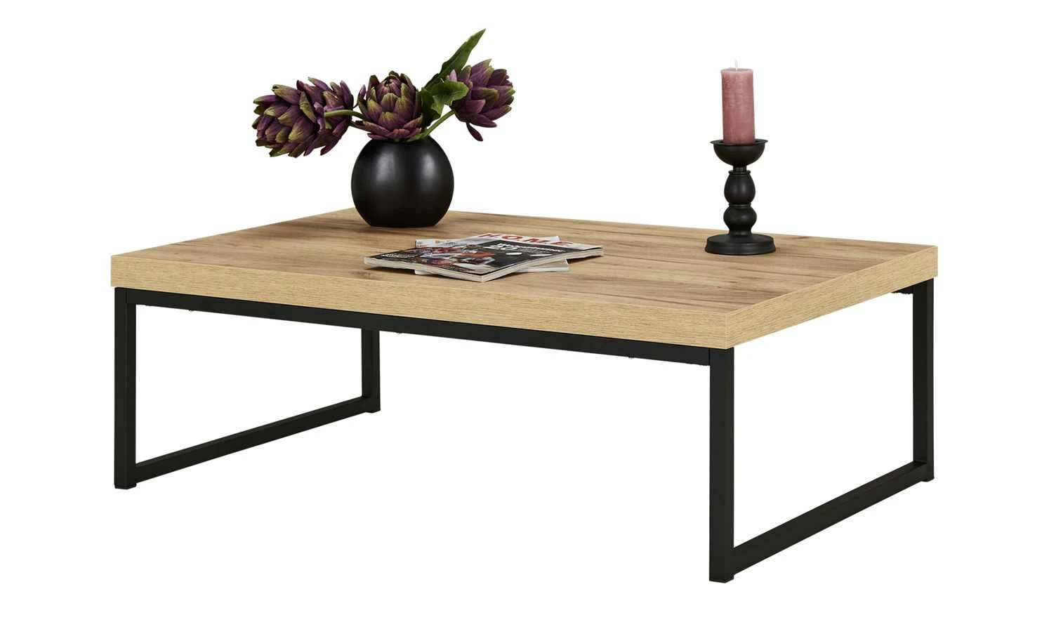 Der Couchtisch Puro überzeugt durch seine moderne Schlichtheit. Die Tischplatte ist aus Kunststoff Nachbildung, das Gestell aus Metall. gefertigt und hat eine angesagte Kufenform.