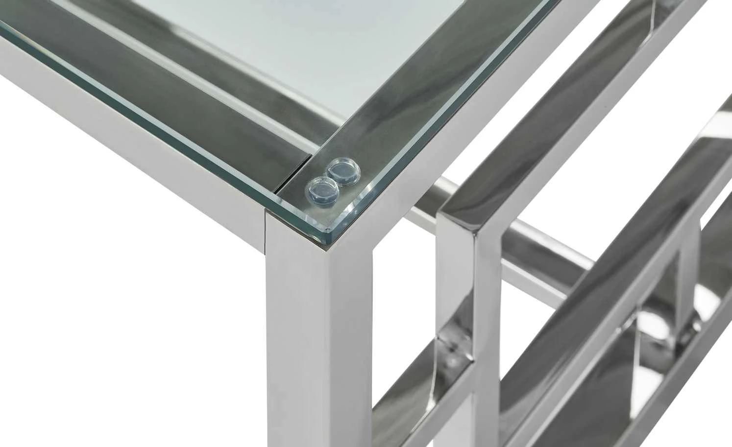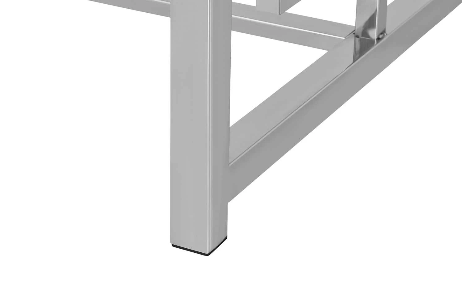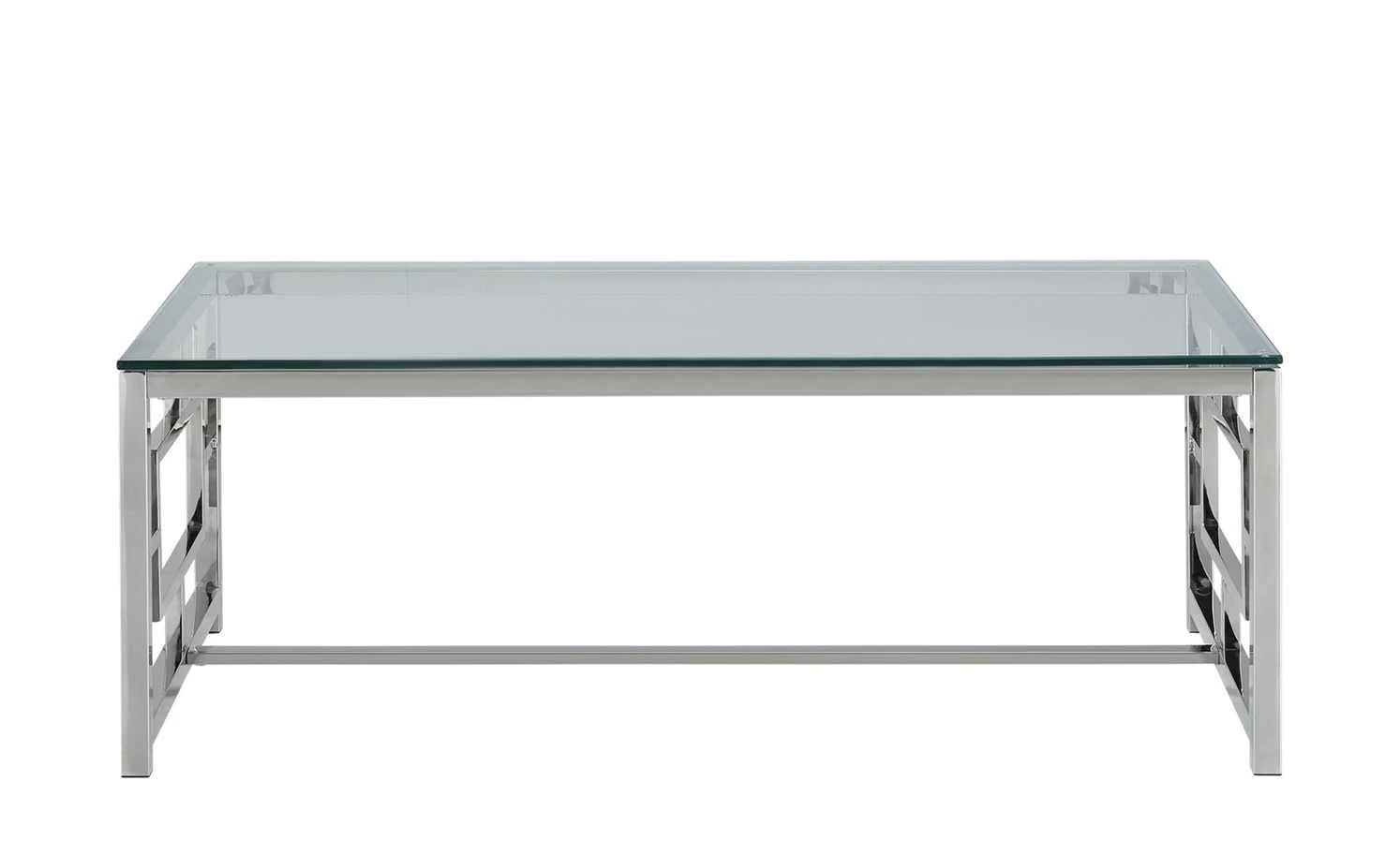 Der Couchtisch Robin passt zu zeitlosen, eleganten Einrichtungen. Während die Tischplatte aus dezentem Klarglas gefertigt ist, fällt das schmucke Gestell sofort ins Auge. Die beiden Gestellseiten sind besonders dekorativ gearbeitet. Für einen noch besseren Stand werden sie von einer Querstrebe verbunden. Das gesamte Gestell ist aus stabilem Edelstahl gefertigt und hat eine verchromte Oberfläche.