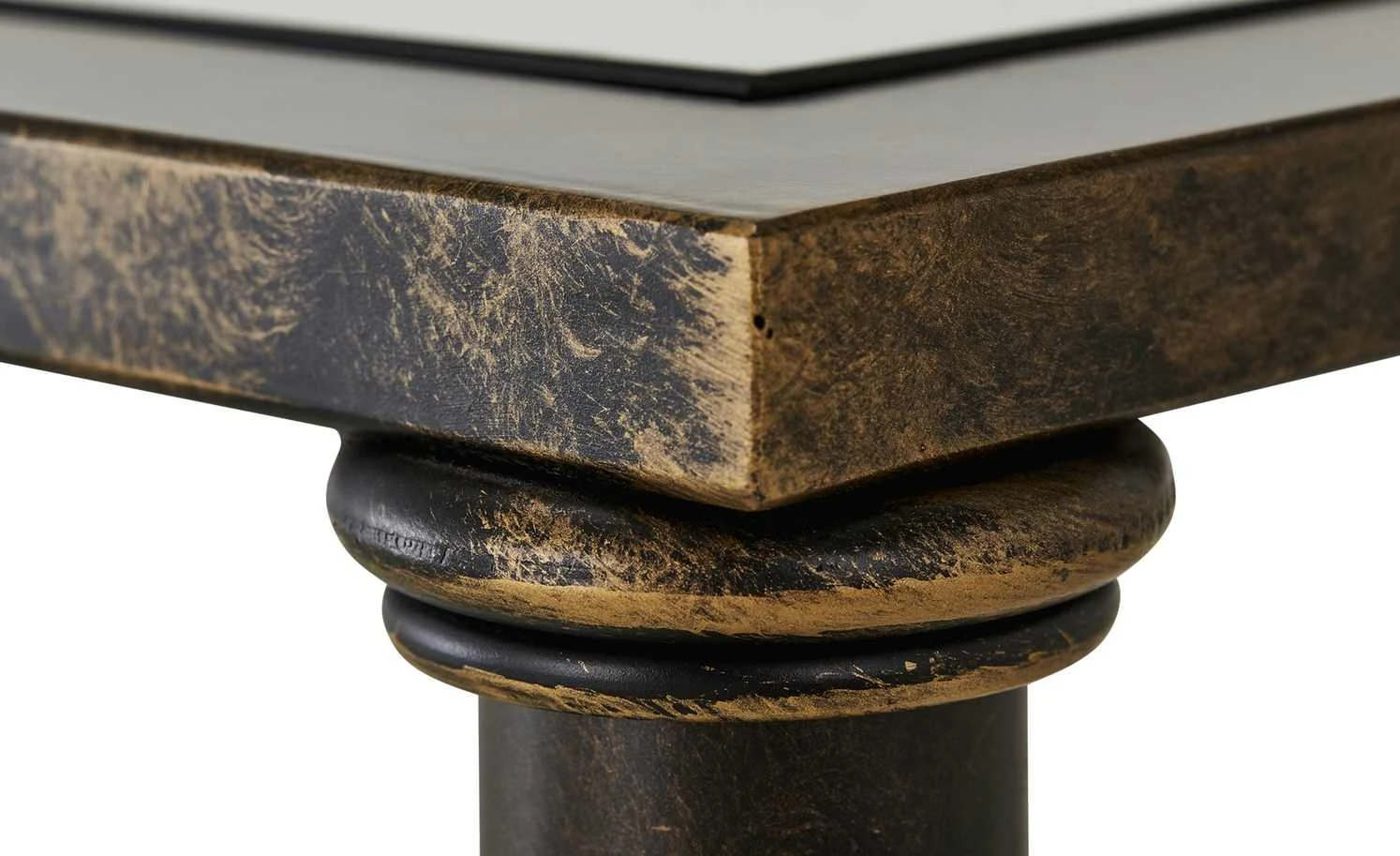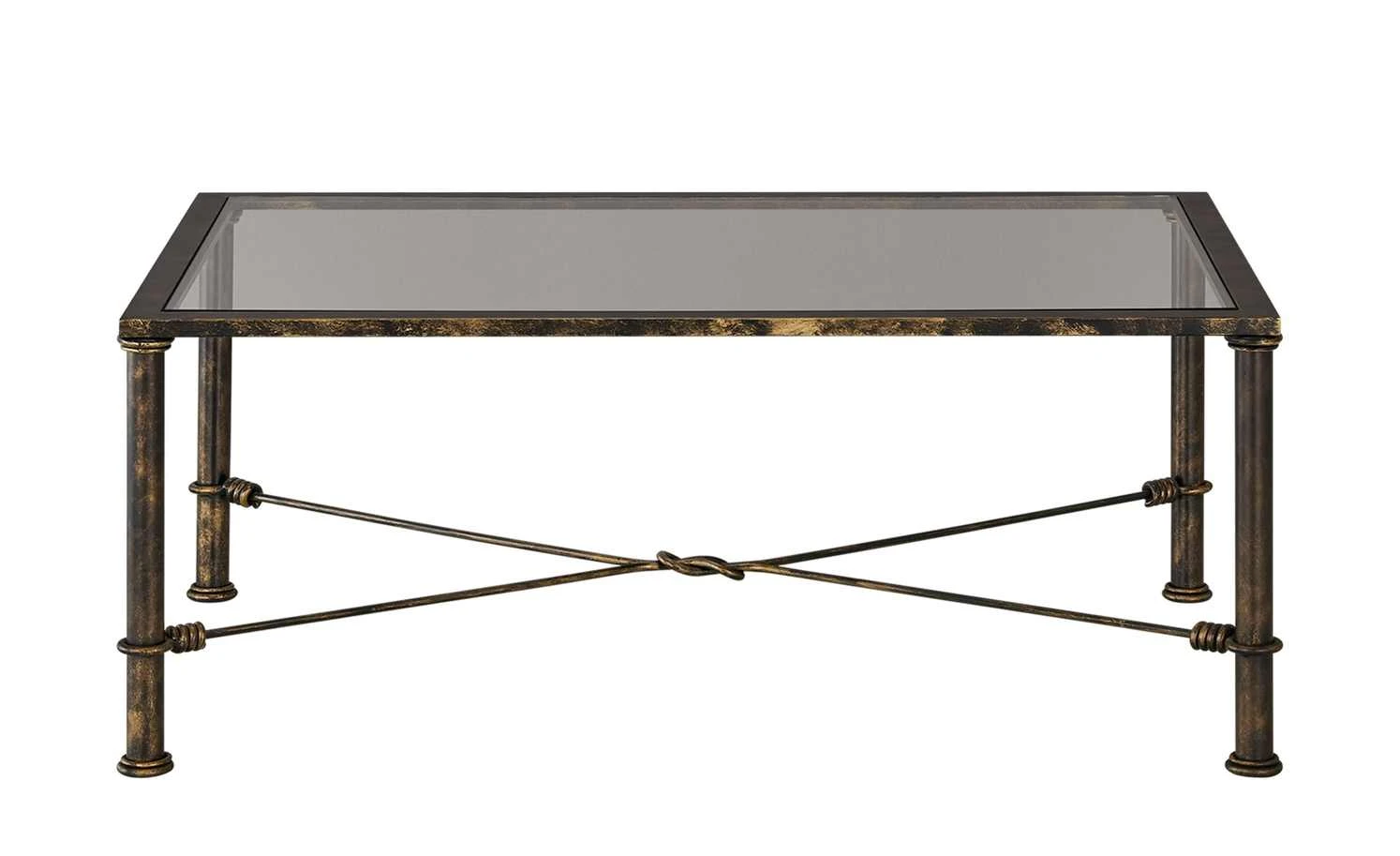 Das Eyecatcherdesign des Couchtisches Toscana erinnert an den Steampunk- und Industrial-Look. Vor allem das antikbraune Gestell fällt ins Auge. Es ist aus lackiertem Metall gefertigt und hat einen angesagten Used-Look. Die Streben zwischen den Tischbeinen erinnern an ineinander verschlungene Metallseile, die zwischen die Beine gespannt wurden. Für die Tischplatte in 120 x 80 cm Größe ist hochwertiges Sicherheits-Kristallglas verwendet worden. Ein schöner Kontrast zum Gestell. Zudem ist das Glas strapazierfähig, und Sie können Sie es ganz leicht pflegen.