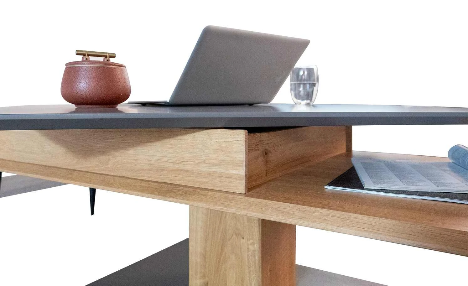 - Mehr zum Material: Material Tisch- und Bodenplatte: Holzwerkstoff lackiert, Schliffoptik