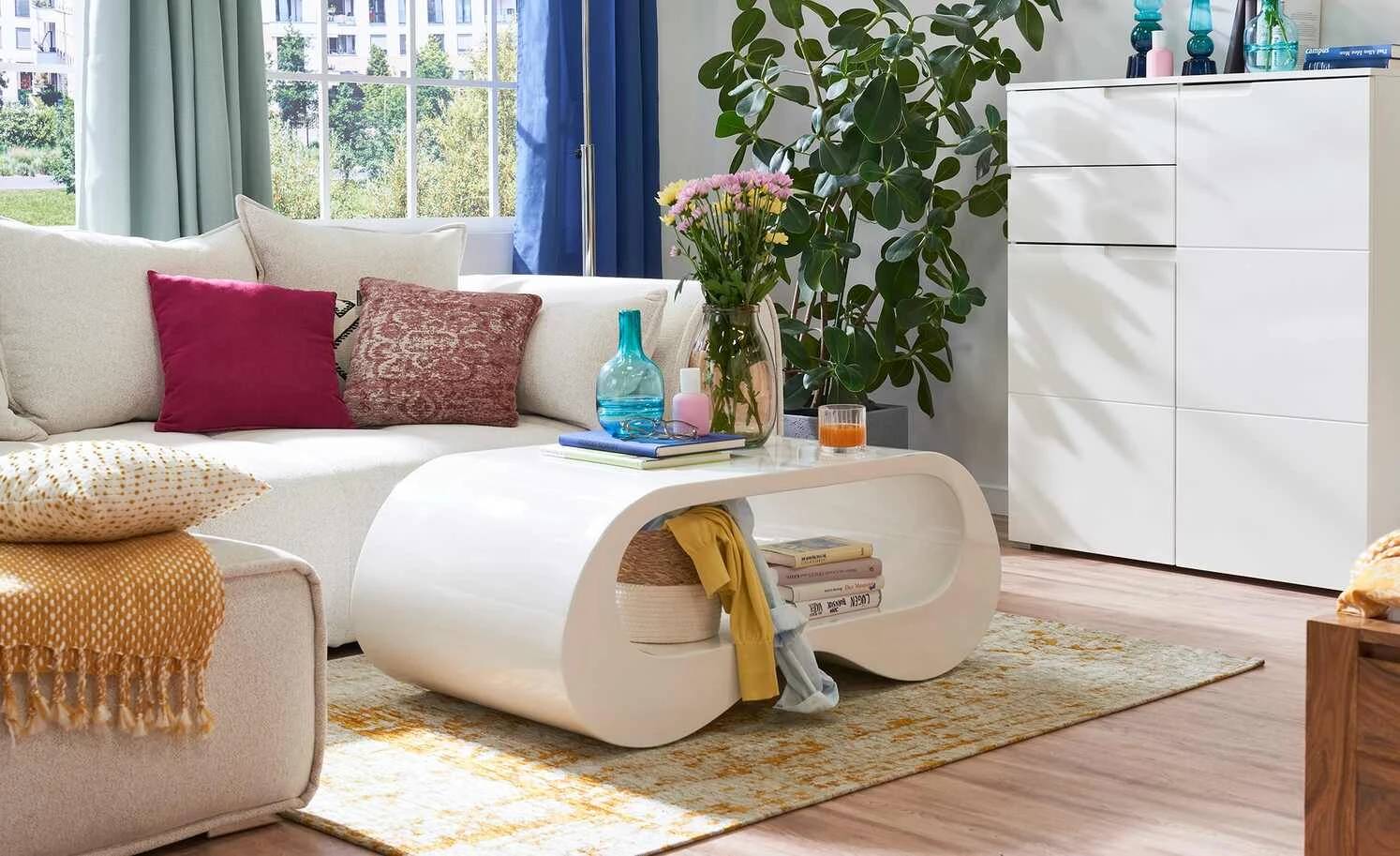 Durch seine weiße Hochglanzlackierung und die attraktiv geschwungene Form ist der Couchtisch Pila ein absoluter Blickfang für Ihre Wohnung. Der Tisch ist bis zu 50 kg belastbar, unterhalb der Tischplatte kann durch das praktikable und kreative Design des Tisches zusätzlicher Platz genutzt werden.