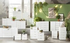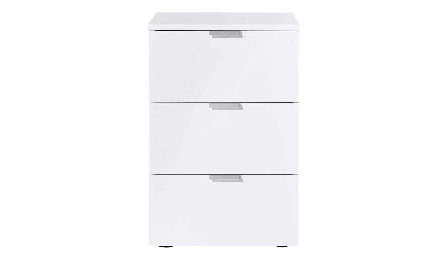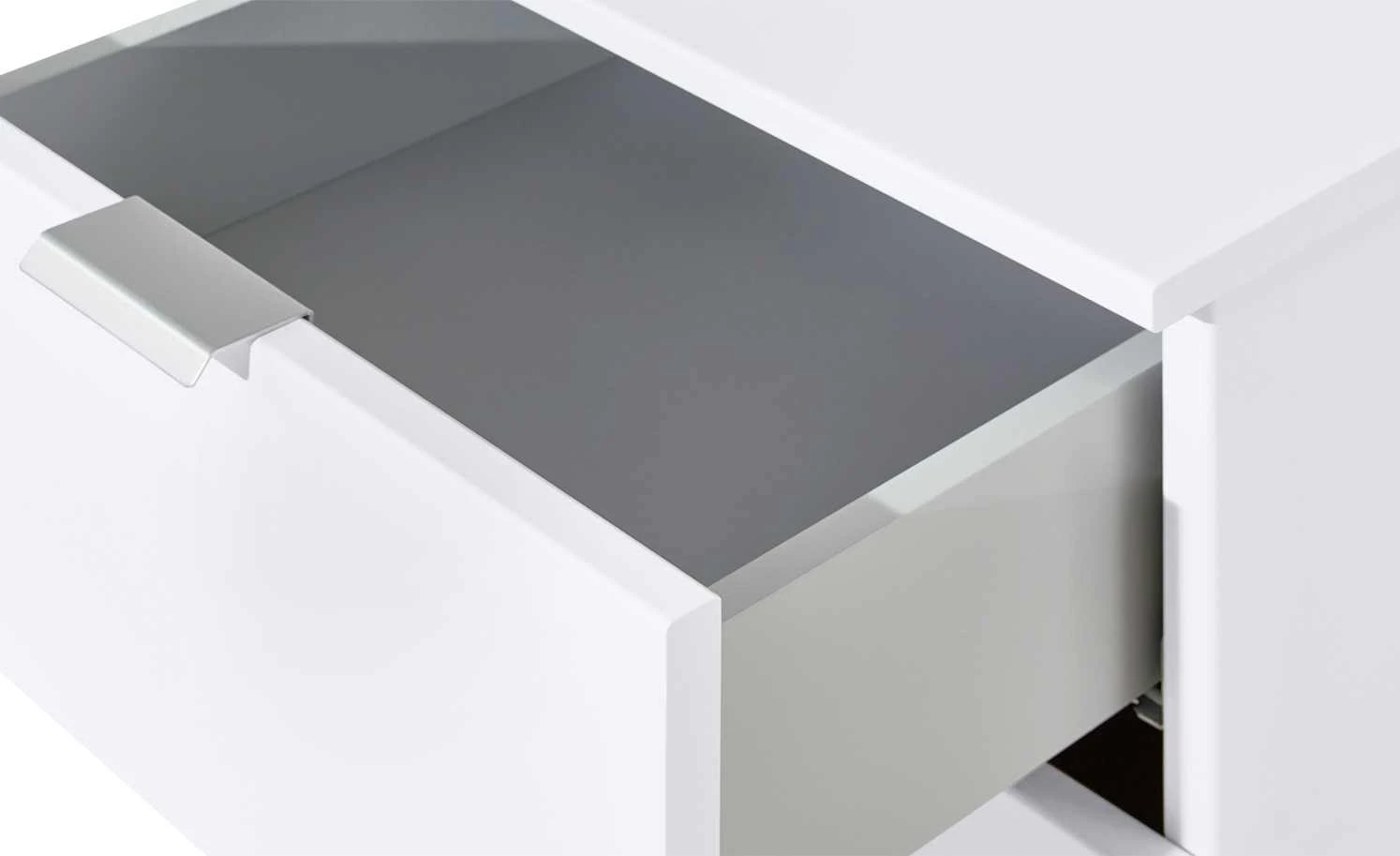Dreamer ist eine praktische Nachtkommode, die perfekt neben Ihr Bett passt. Das geradlinige Design fügt sich nahtlos in viele Einrichtungsstile ein. Das strahlende Polarweiß lässt die Kommode edel erscheinen und passt zur klaren Formgebung. In den drei Schüben findet alles Platz, was Sie untergebracht wissen möchten. Die Schubfächer werden mithilfe von schmalen Griffleisen aus Metall geöffnet. Sie schließen sich aufgrund des Softeinzuges langsam und leise.