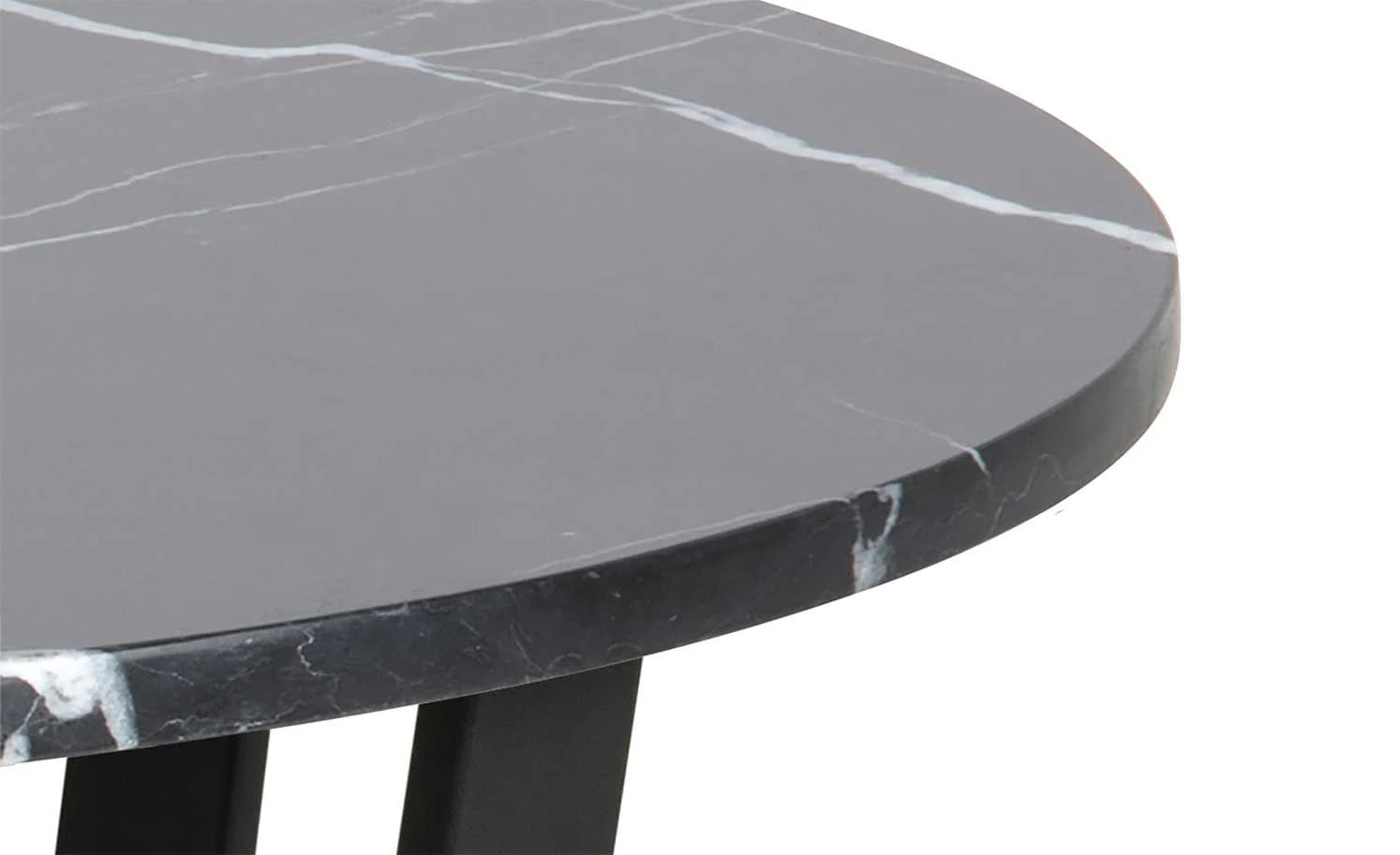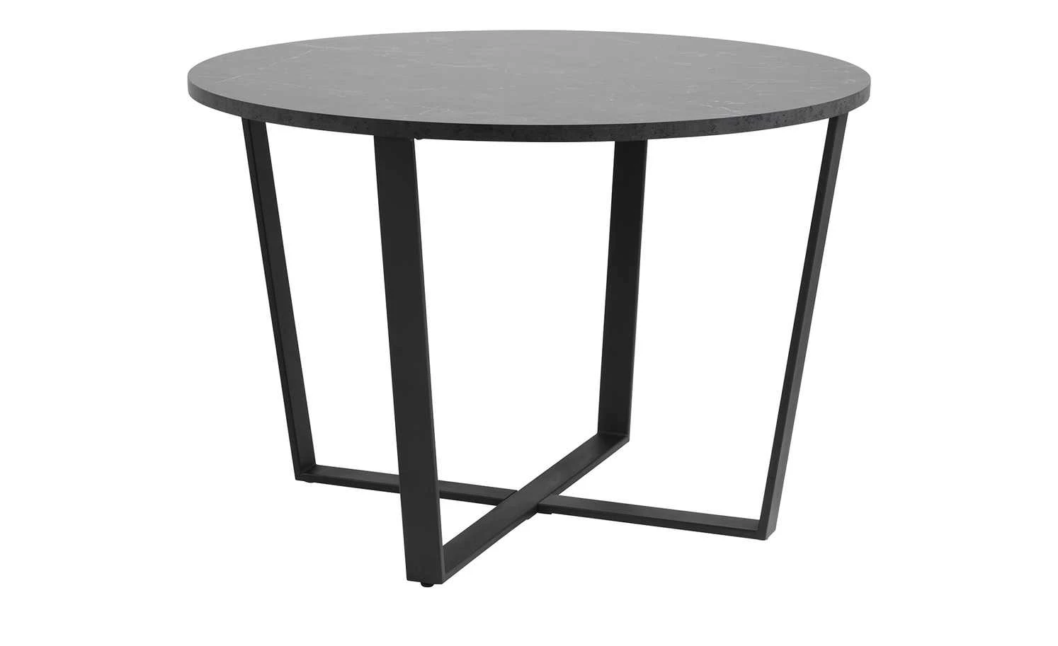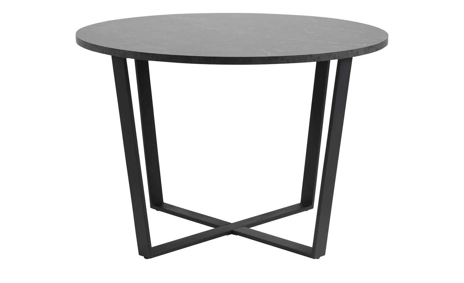 Trendige Kufenfüße in Mattschwarz betonen die moderne Tischplatte in authentischer Marmor-Optik. Dadurch passt der Esstisch Adrian in zahlreiche moderne Einrichtungsstile. An der pflegeleichten Tischplatte finden dank des Durchmessers von 110 Zentimetern bequem vier bis fünf Personen Platz. Da sich der Esstisch auf einer Komforthöhe von 75 Zentimetern befindet, können Sie ihn problemlos mit diversen Stuhltypen kombinieren.
