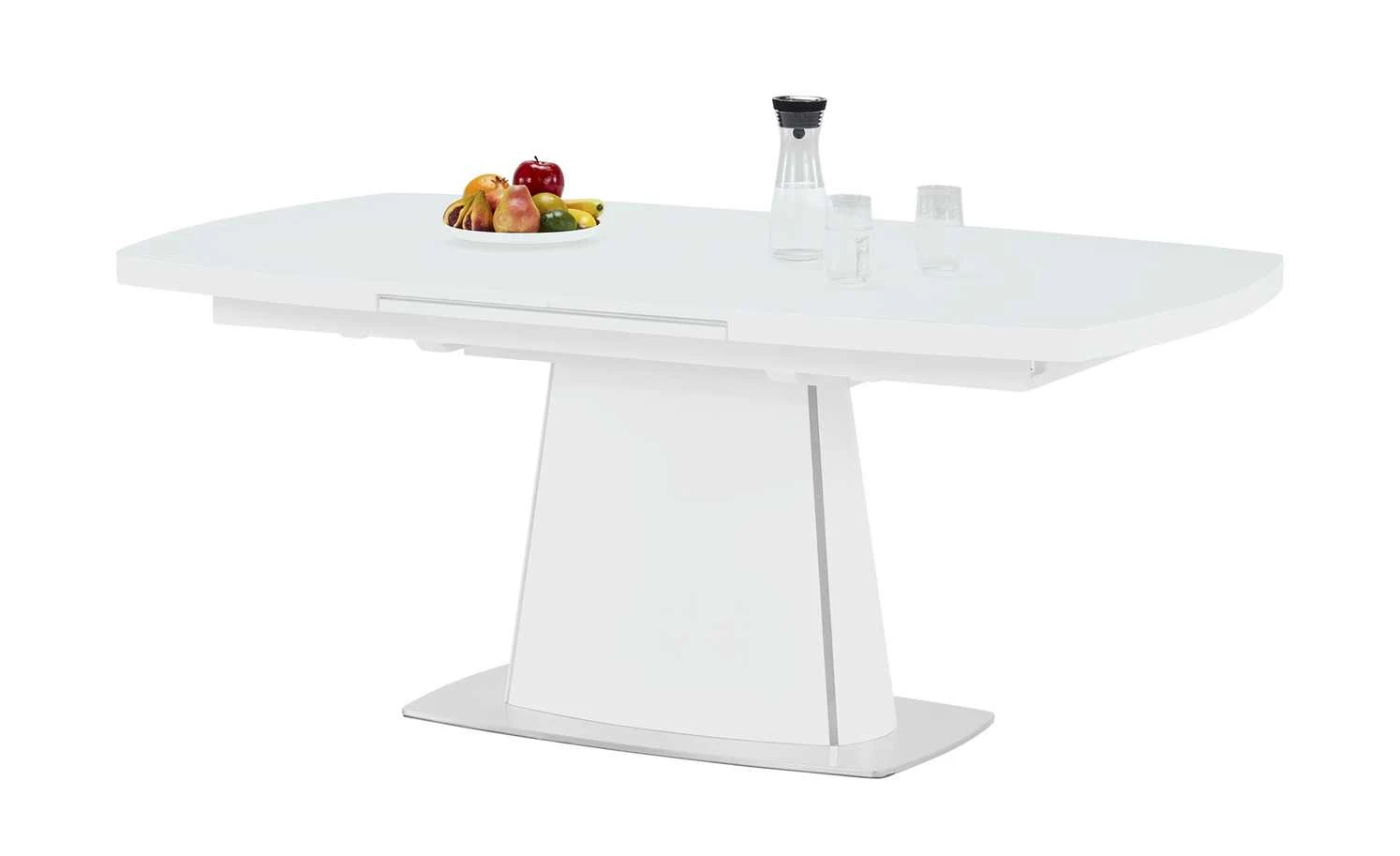 Modern, hell, zeitlos: Der ausziehbare Esstisch Damian passt in nahezu jedes moderne Esszimmer. Durch den integrierten Synchronauszug können Sie die Tischplatte von auf 240 Zentimeter erweitern. Dadurch können bis zu zwölf Personen beisammen sitzen.