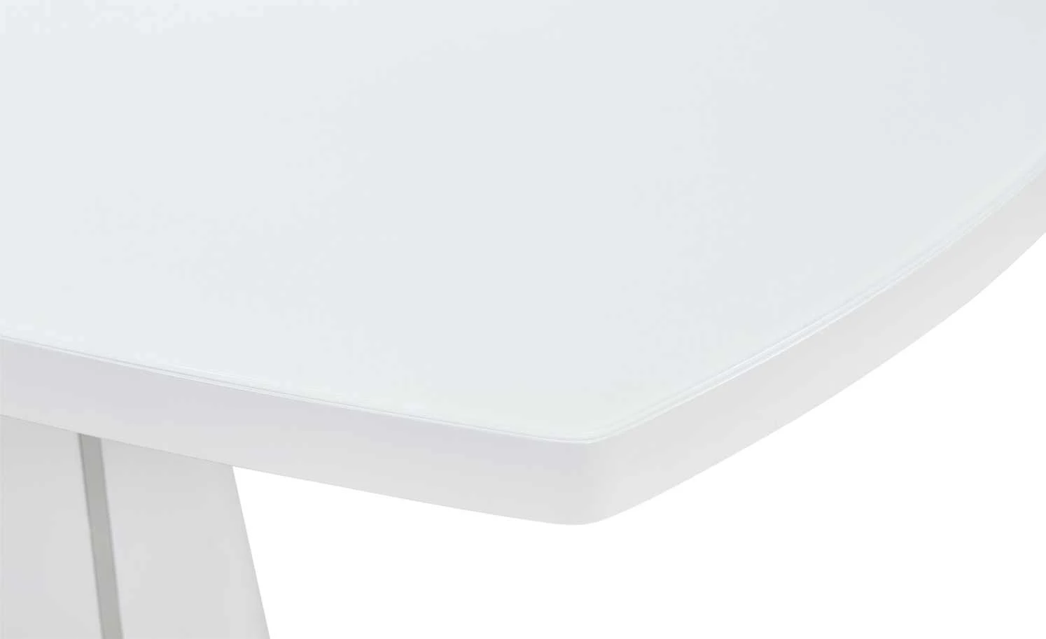 Damians weiße Tischplatte besitzt eine Glasplatte aus Sicherheitsglas, die bei Klecker-Unfällen leicht abgewischt werden kann. Abgerundete Ecken und Akzente in Edelstahl-Optik verleihen dem Tisch einen edlen Look. Übrigens: Beim Aufbau entscheiden Sie selbst, ob der Säulentisch die A- oder die V-Form haben soll. Beide Varianten können problemlos auf der Metall-Bodenplatte montiert werden.