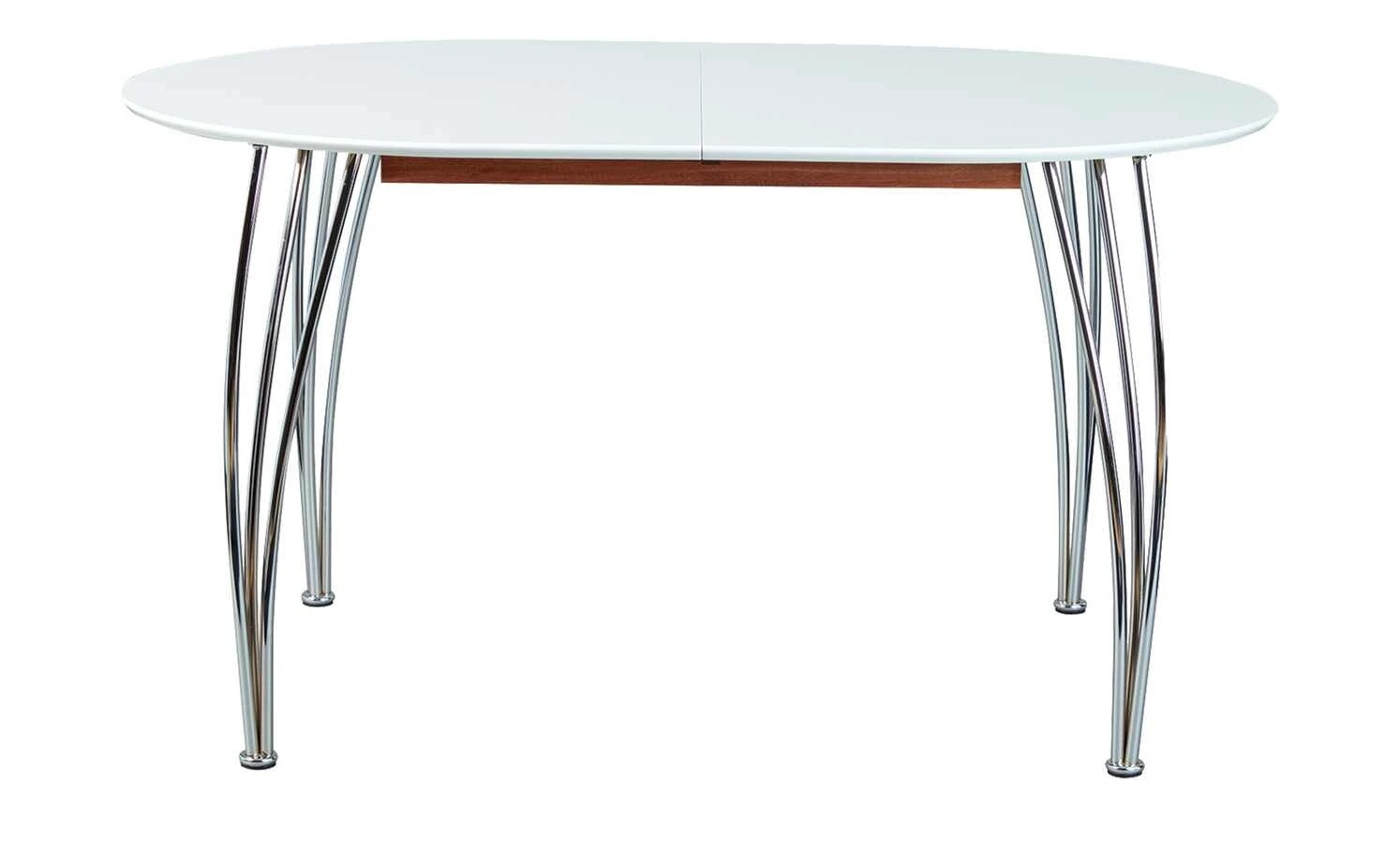 Idris ist ein moderner Tisch, der praktischen Nutzen mit Design vereint. Die vier verchromten Metallfüße splitten sich zur Tischplatte hin in drei elegante Einzelstränge und lassen den Tisch damit luftig leicht erscheinen. Die ovale Tischplatte ist in zeitlosem, kombinationsfreudigem Weiß gehalten und harmoniert dadurch wunderbar mit den Füßen. An dem Esstisch finden bis zu sechs Personen Platz. Bei Bedarf kann die Tischplatte mit nur wenigen Handgriffen ausgezogen werden. Dann finden zwei weitere Gäste Platz.