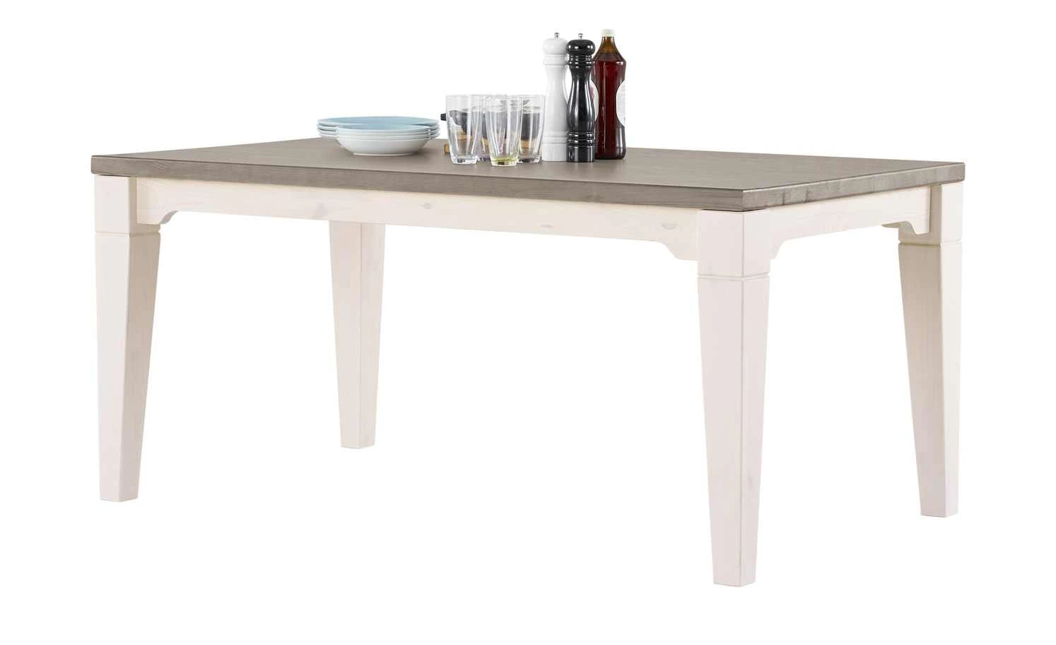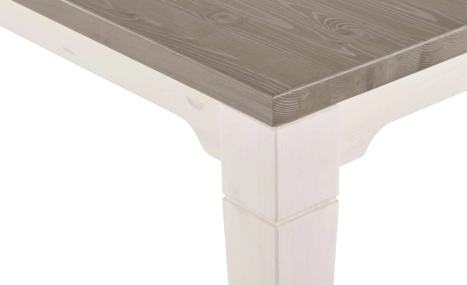 Speisen wie zu Großmutters Zeiten auf dem Land: Der Esstisch Bornholm besticht durch seinen rustikalen, aber dennoch wohlgeformten Landhausstil. Durch die Verwendung von massivem Kiefernholz ist der Tisch stabil und langlebig. Das Tischgestell ist in einem freundlichen Weiß gehalten, die Struktur des Holzes ist aber dennoch sehr schön zu erkennen. Farblich dazu abgesetzt ist die Tischplatte, bei der der natürliche Look des Kiefernholzes durch eine Lackierung in einem dunklen Lavaton noch verstärkt wurde. Bei einer Größe von 180 Zentimetern können Sie bis zu 8 Personen am Tisch platzieren.