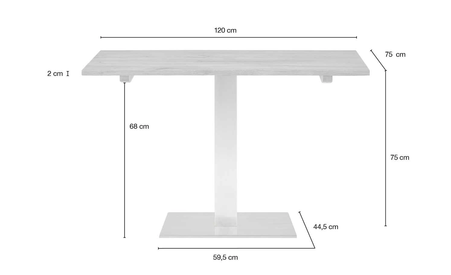 - Maße der Tischplatte (LxB): 120 x 75 cm