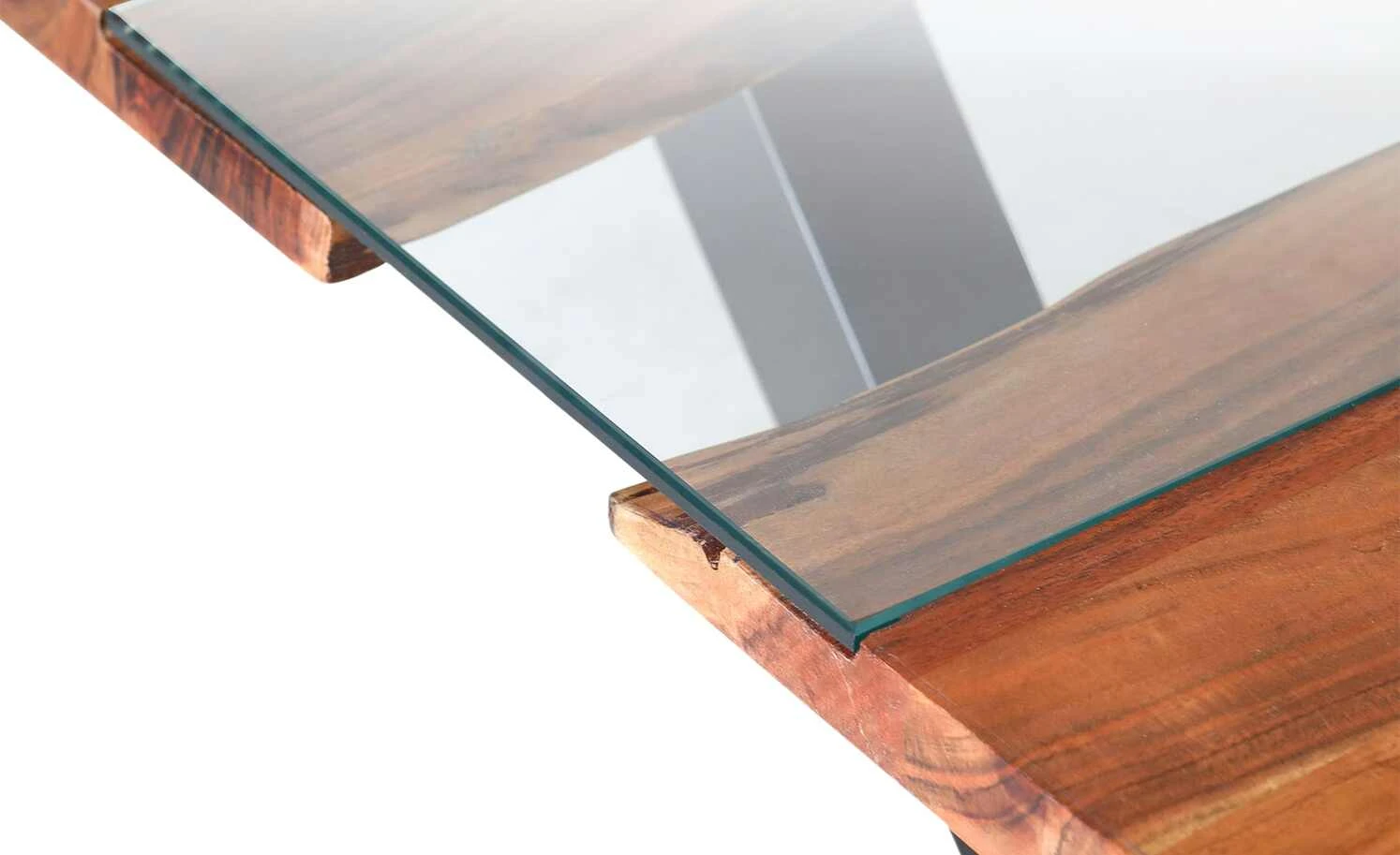 - Mehr zu Ausstattung / Funktion: Tischplatte mit eingelegtem Sicherheitsglas , mit echter Baumkante