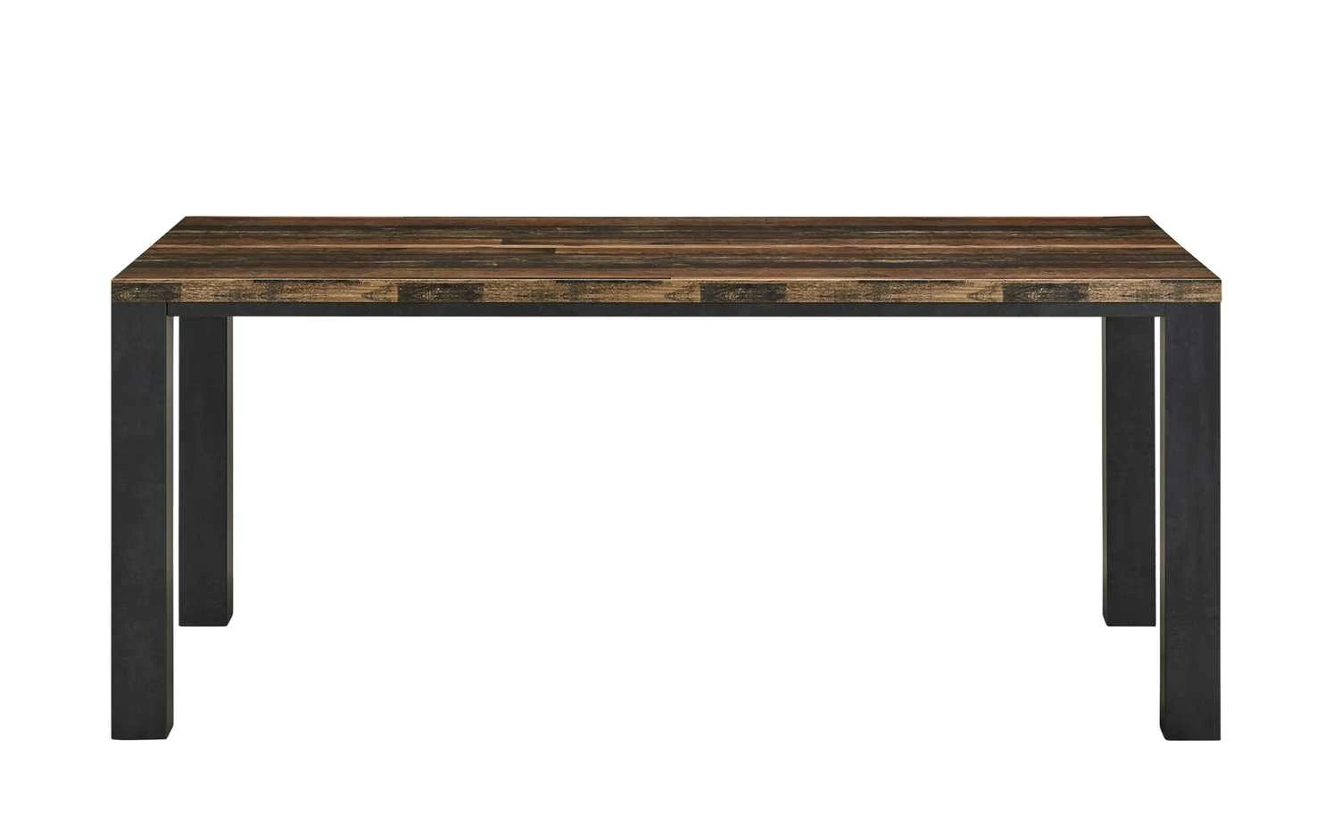 Der Industrial-Style liegt im Trend. Auch der Esstisch Matera greift den besonderen Look auf. Sie können ihn wunderbar mit anderen Möbeln im Industriestil kombinieren – oder Sie machen den Tisch zum Eyecatcher für den Essbereich. Die rechteckige Tischplatte hat ein interessantes Dekor in Texas Oak (Nachbildung). Die vier Tischbeine setzen sich in Schwarzstahl (Nachbildung) ab. Tischplatte und Gestell sind beschichtet. Das macht Sie unempfindlich für Kratzer.