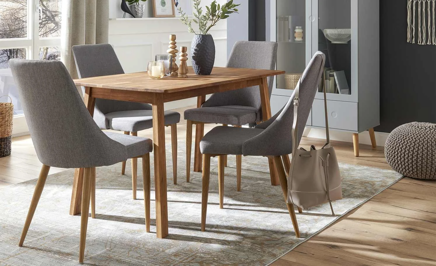 Siro ist ein stabiler Esstisch aus massiver Eiche. Gestell und Tischplatte sind dunkel geölt worden. Das verleiht dem Tisch eine warme Note und bringt die natürliche Maserung gut zur Geltung. Gleichzeitig ist die Holzoberfläche so versiegelt worden. Siro bietet bequem Platz für sechs Personen. Da der Tisch nicht so groß ist, eignet er sich für kleine Räumlichkeiten.