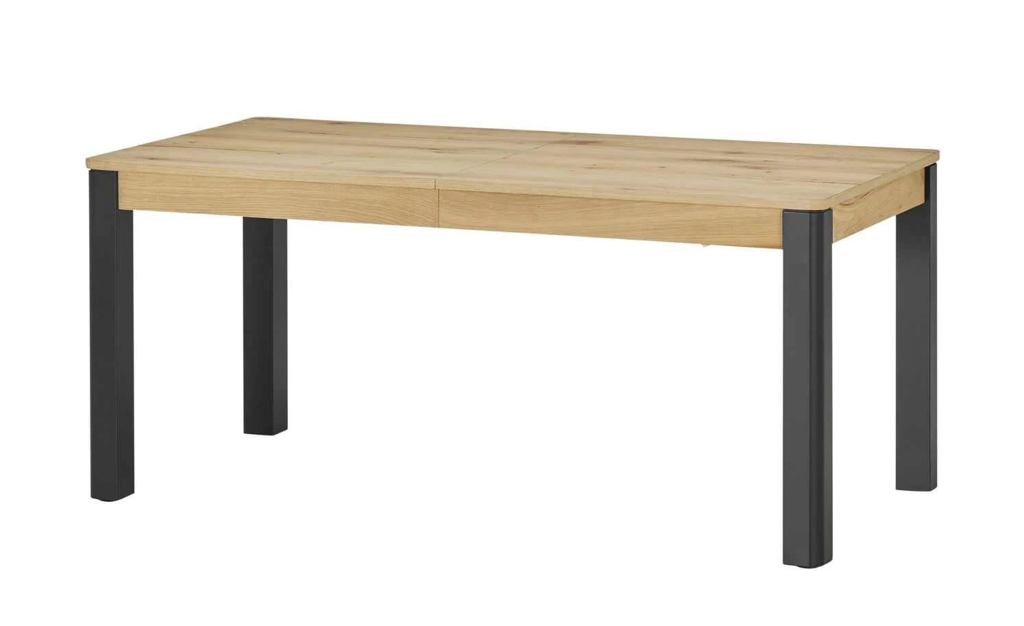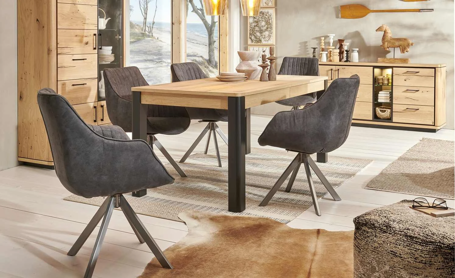 - Mehr zum Material: Tischbeine aus MDF (Mitteldichte Holzfaserplatte) Schwarz lackiert, Tischplatte und Zarge aus Wildeiche natur furniert mit Wachseffektlack