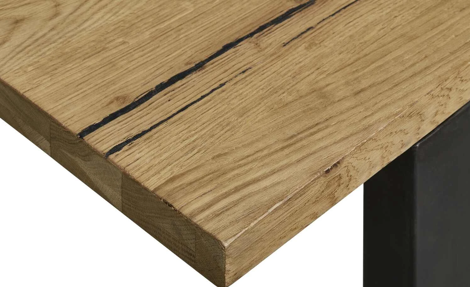 - Mehr zum Material: Tischlerplatte: Vollholz-Platte mit zwei Schichten aus Eichenfurnier und einer mittleren Schicht aus Kiefer-Massivholz-Leisten, Tischplatte: Tischlerplatte Eiche furniert lackiert, Gestell: Eisen Anthrazit lackiert