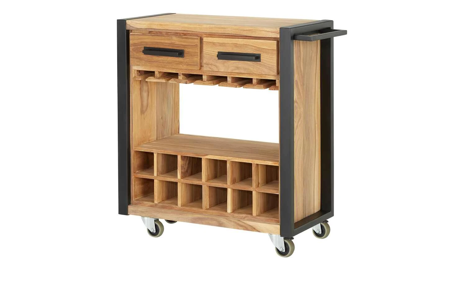 - Mehr zu Ausstattung / Funktion: 6 Halterungen für Weingläser, Rollen auf der Seite des Griffes haben eine Bremse, 12 Flaschenfächer, Griff / Handtuchhalter auf der rechten Seite