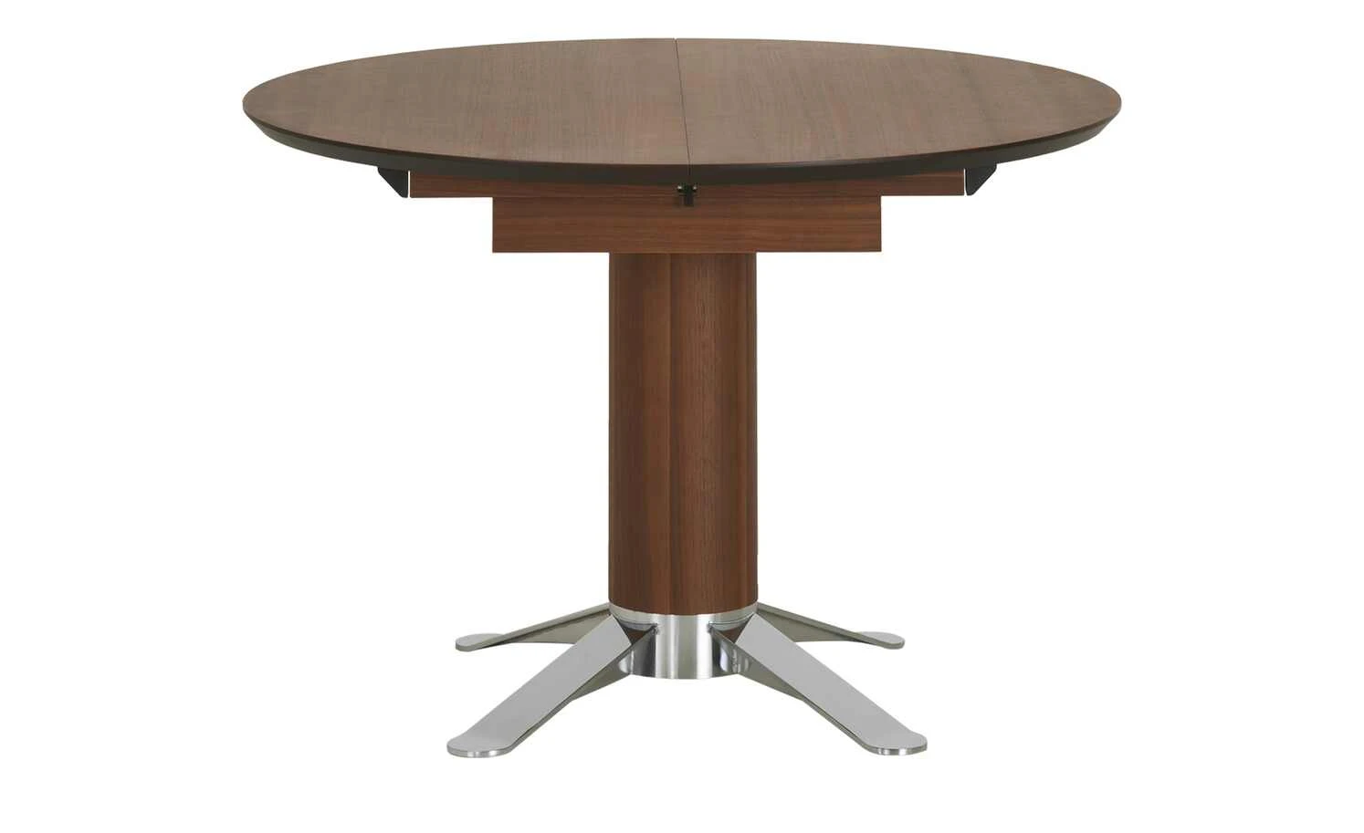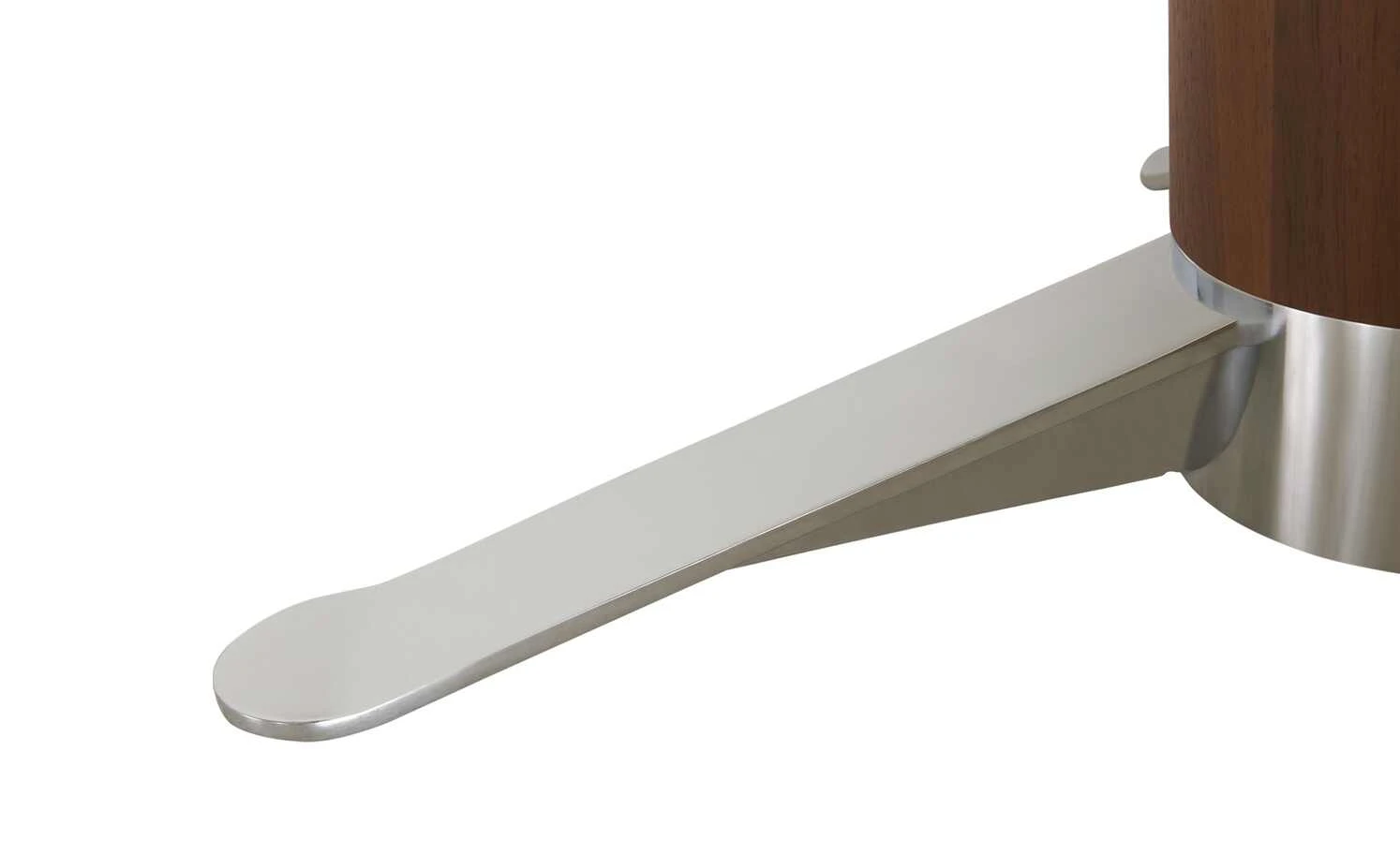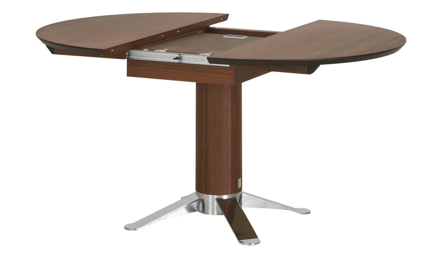 - Mehr zum Material: Oberflächenfinish Tischplatte: Wachseffektlack, Füße: Stahl hochglanzverchromt, Säule: Nussbaum mit Wachseffektlack behandelt