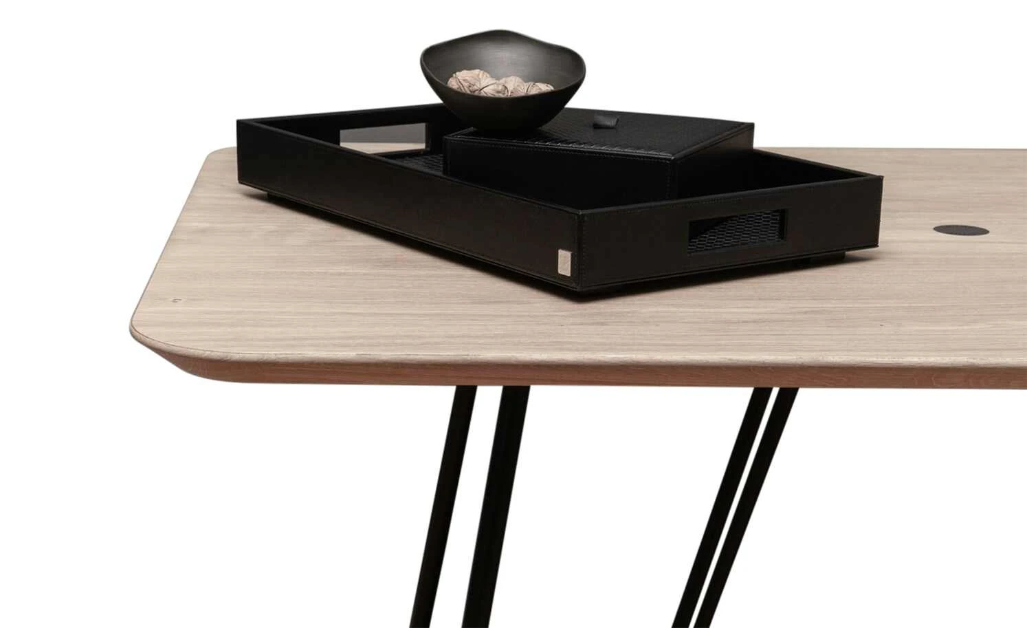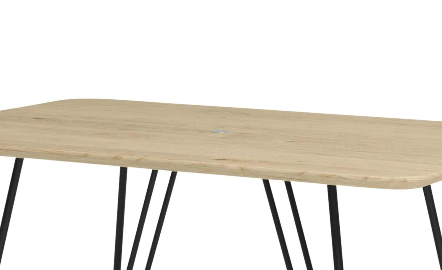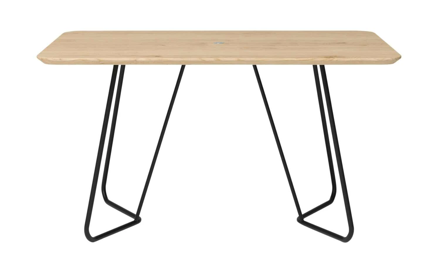 - Mehr zum Material: Tischplatte: Wildeiche natur (Furnier), Gestell: Metall Schwarz strukturiert, Oberflächenfinish Tischplatte: Wachseffektlack