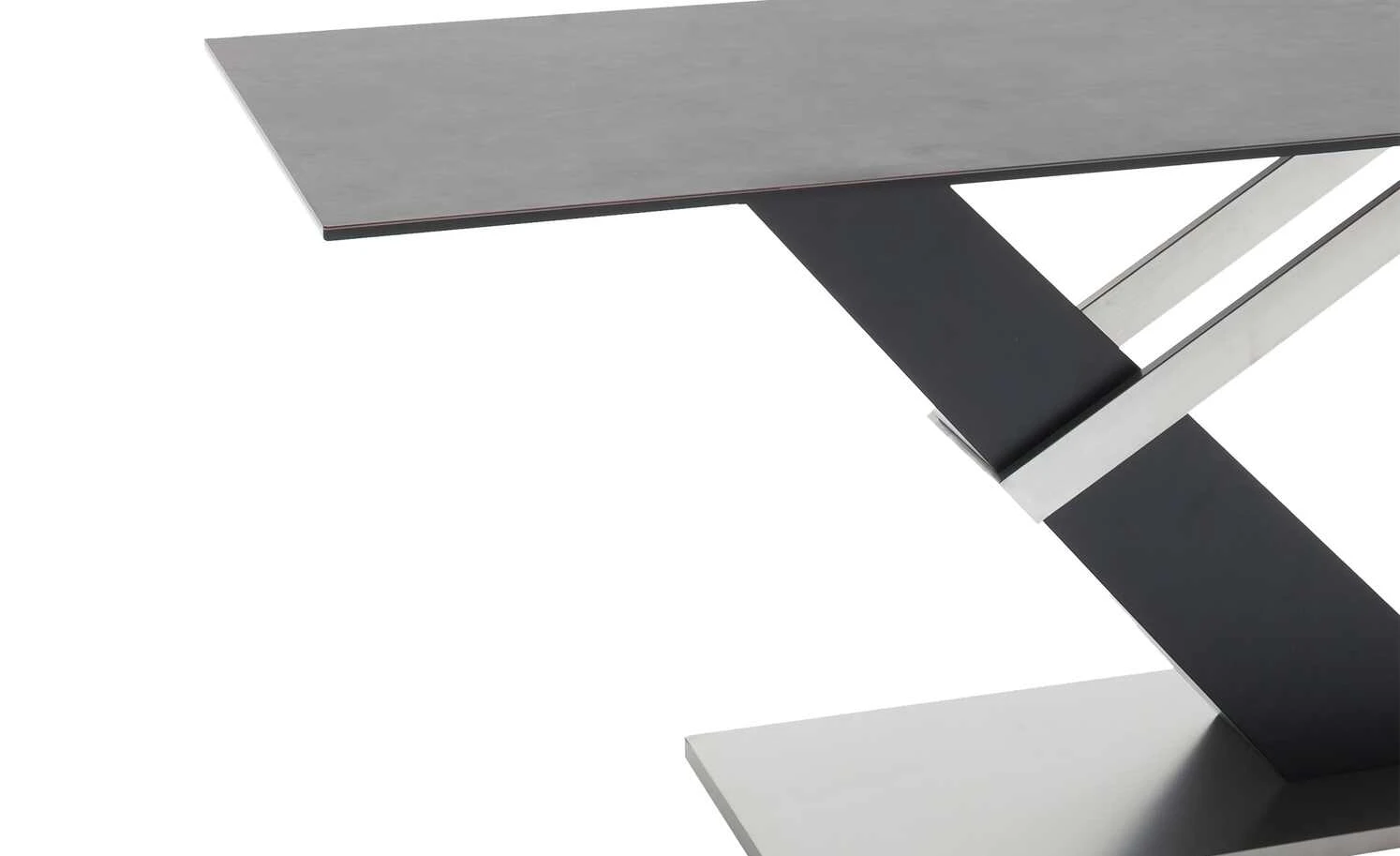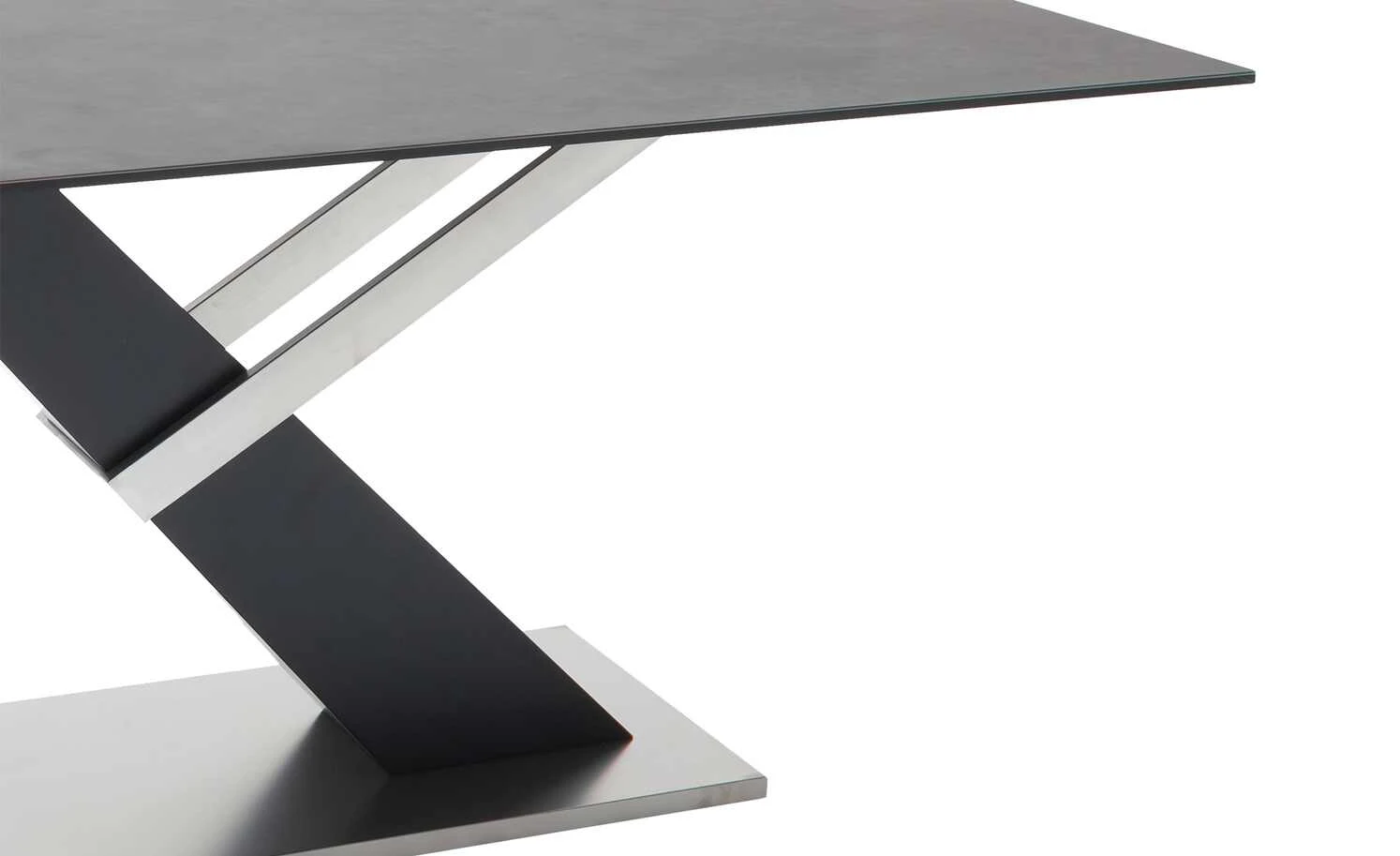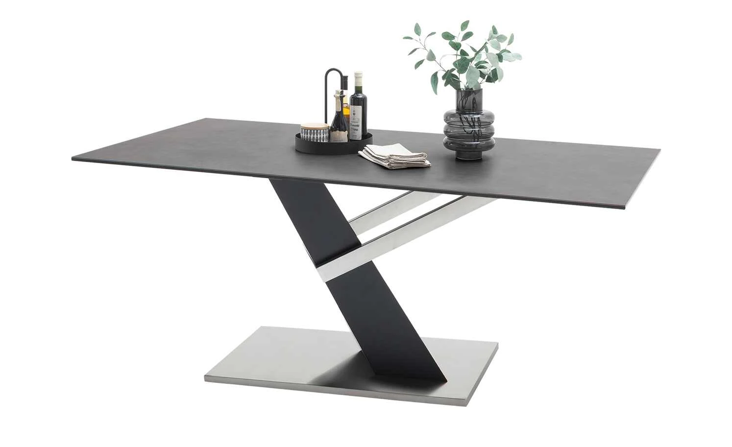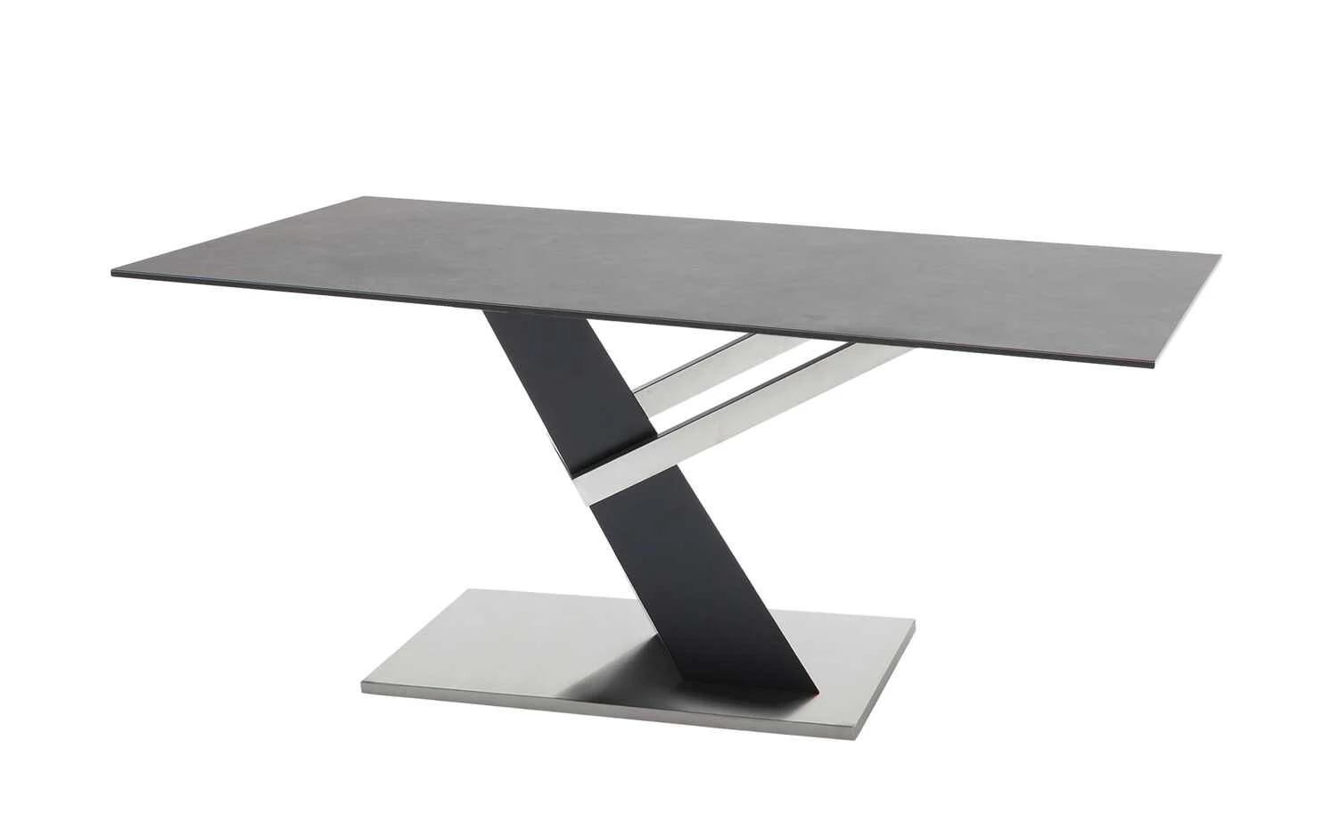 - Mehr zum Material: Säule aus Holzwerkstoff Schwarz matt lackiert und Edelstahl gebürstet, Bodenplatte aus Edelstahl gebürstet, Tischplatte aus Keramik Anthrazit auf Sicherheitsglas, Schwarz lackiert