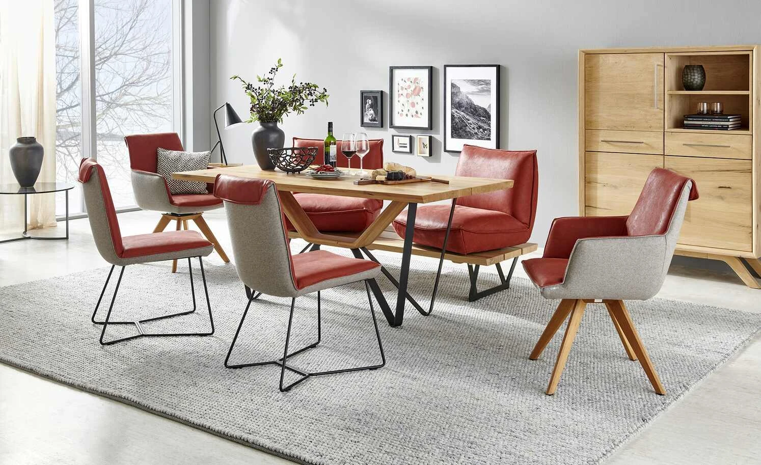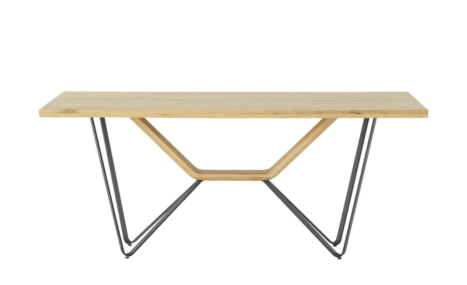 - Mehr zum Material: Gestell: Metall pulverbeschichtet strukturiert, Tischplatte und Gestell-Bügel: Wildeiche Massiv (UV-beschichtet mit Öl-Effekt) – Eichenholz welches über vermehrt auftretende Äste, kleine Risse oder Wirbel verfügt