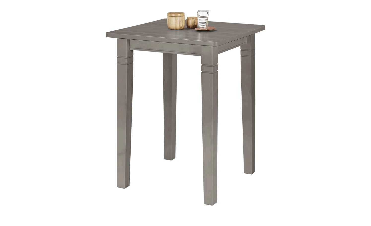 Der Bartisch Florian hat eine praktische Höhe von 103 Zentimetern. So können Sie Ihre Mahlzeiten auch mal bequem im Stehen einnehmen. Florian ist komplett aus massiver Kiefer gefertigt. Seine Oberfläche ist gebeizt und lackiert worden. So hat das Holz einen modernen Grauton erhalten. Die holztypische Maserung schimmert durch die Farbe hindurch. Der natürliche Look unterstreicht das Landhausdesign des Tisches. Übrigens: Sie können Florian wunderbar mit den passenden Barstühlen der Serie ergänzen.