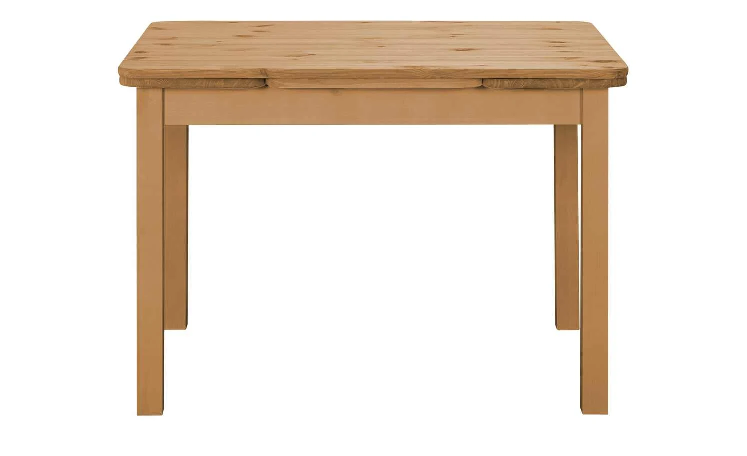 Der Esstisch ist in Kiefer massiv gefertigt. Das Gestell ist weiß lackiert und die Platte laugenfarbig, was den Landhausstil unterstreicht. Aufgrund seiner Größe ist er ideal für kleine Räumlichkeiten. Durch die beiden Ausziehplatten mit jeweils 25 cm, kann die Fläche des Tisches für ca. 6 Personen vergrößert werden.