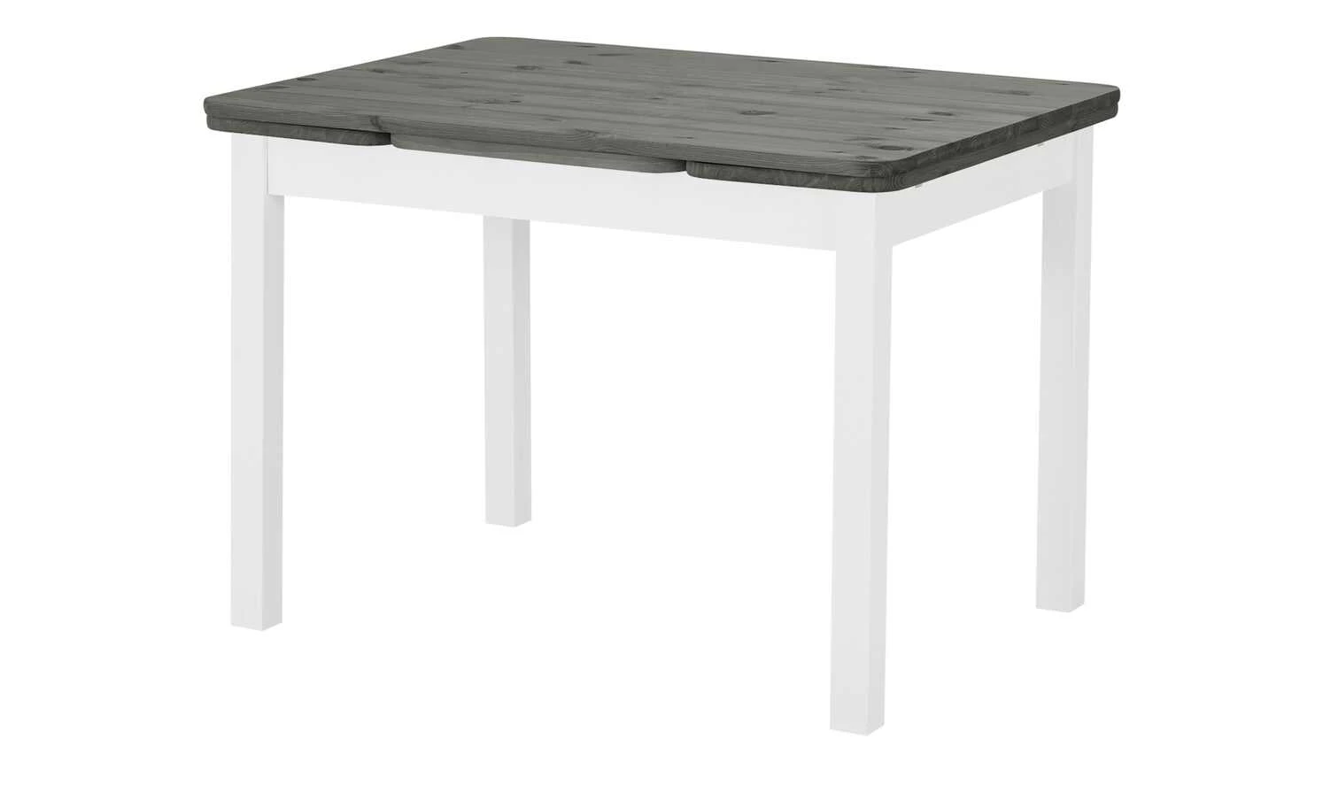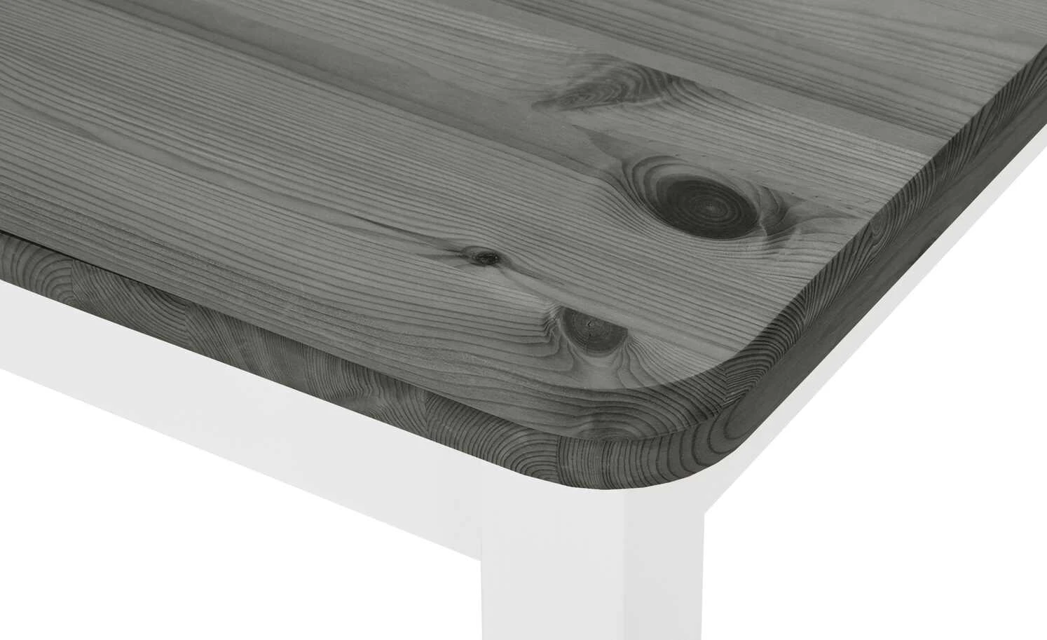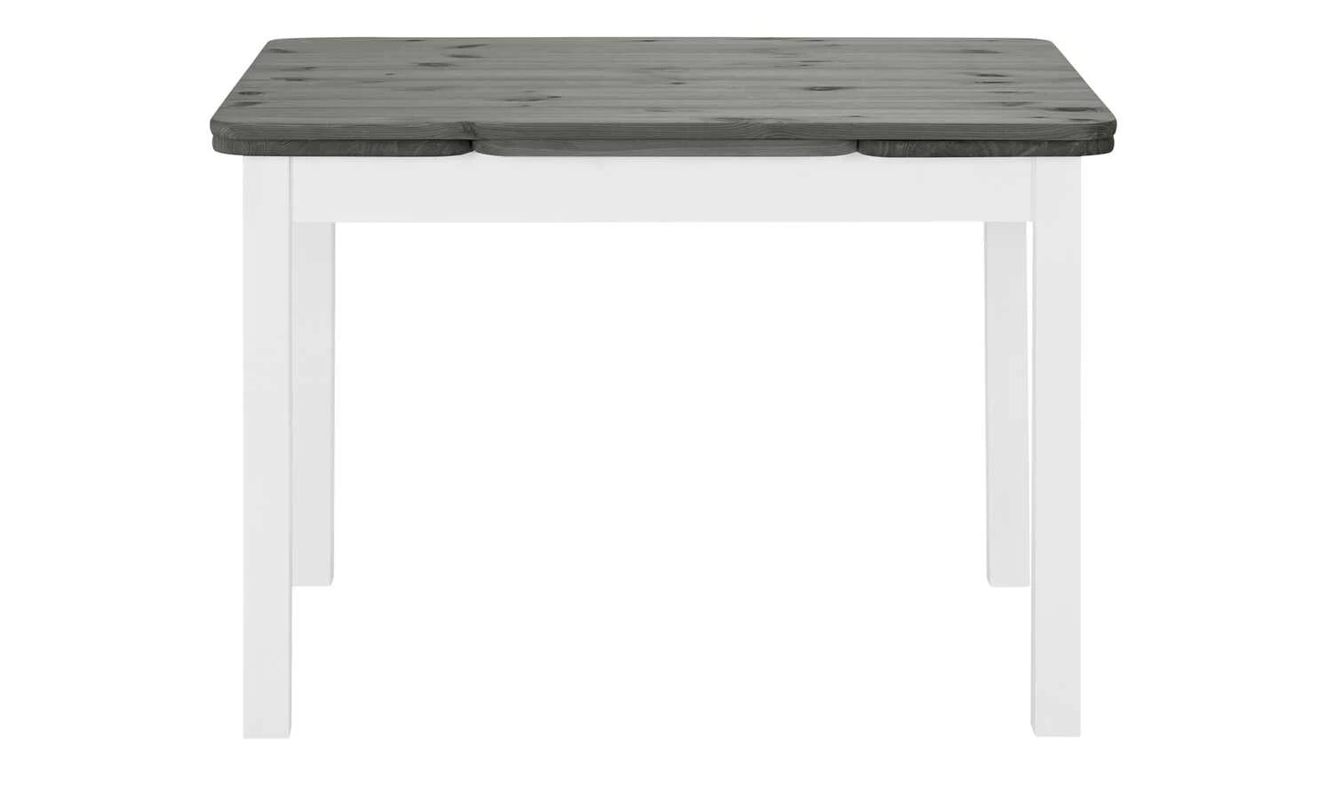 Der Esstisch ist in Kiefer massiv gefertigt. Das Gestell ist weiß lackiert und die Platte laugenfarbig, was den Landhausstil unterstreicht. Aufgrund seiner Größe ist er ideal für kleine Räumlichkeiten. Durch die beiden Ausziehplatten mit jeweils 25 cm, kann die Fläche des Tisches für ca. 6 Personen vergrößert werden.